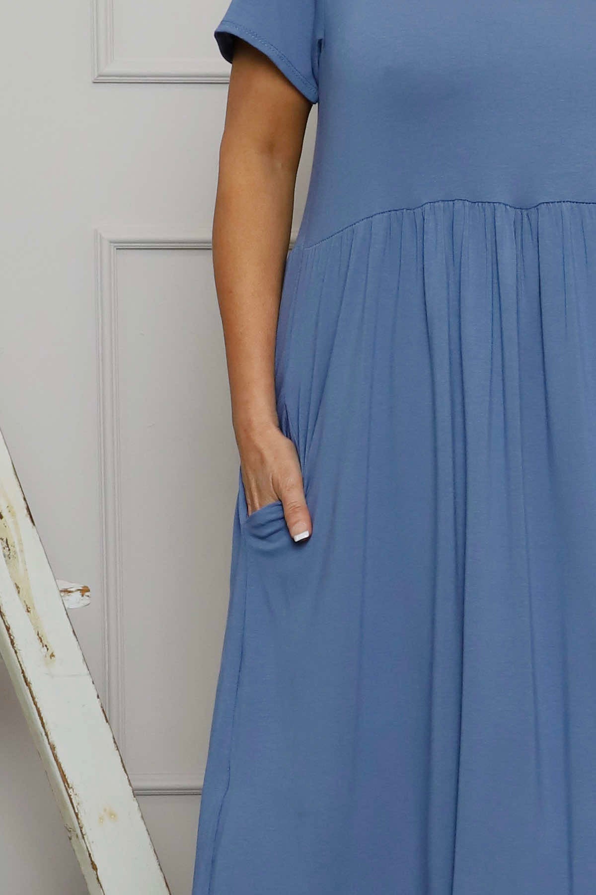 Stay cool and comfy in our Kylie Dress. Featuring short sleeves, round neckline, and pockets for the ultimate convenience. Perfect for any occasion, this dress has got you covered. Upgrade your wardrobe now!