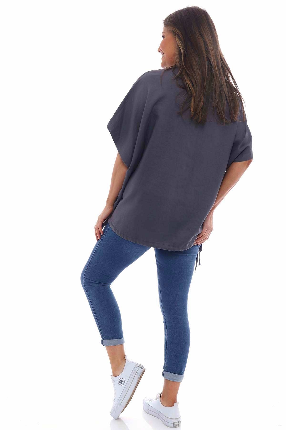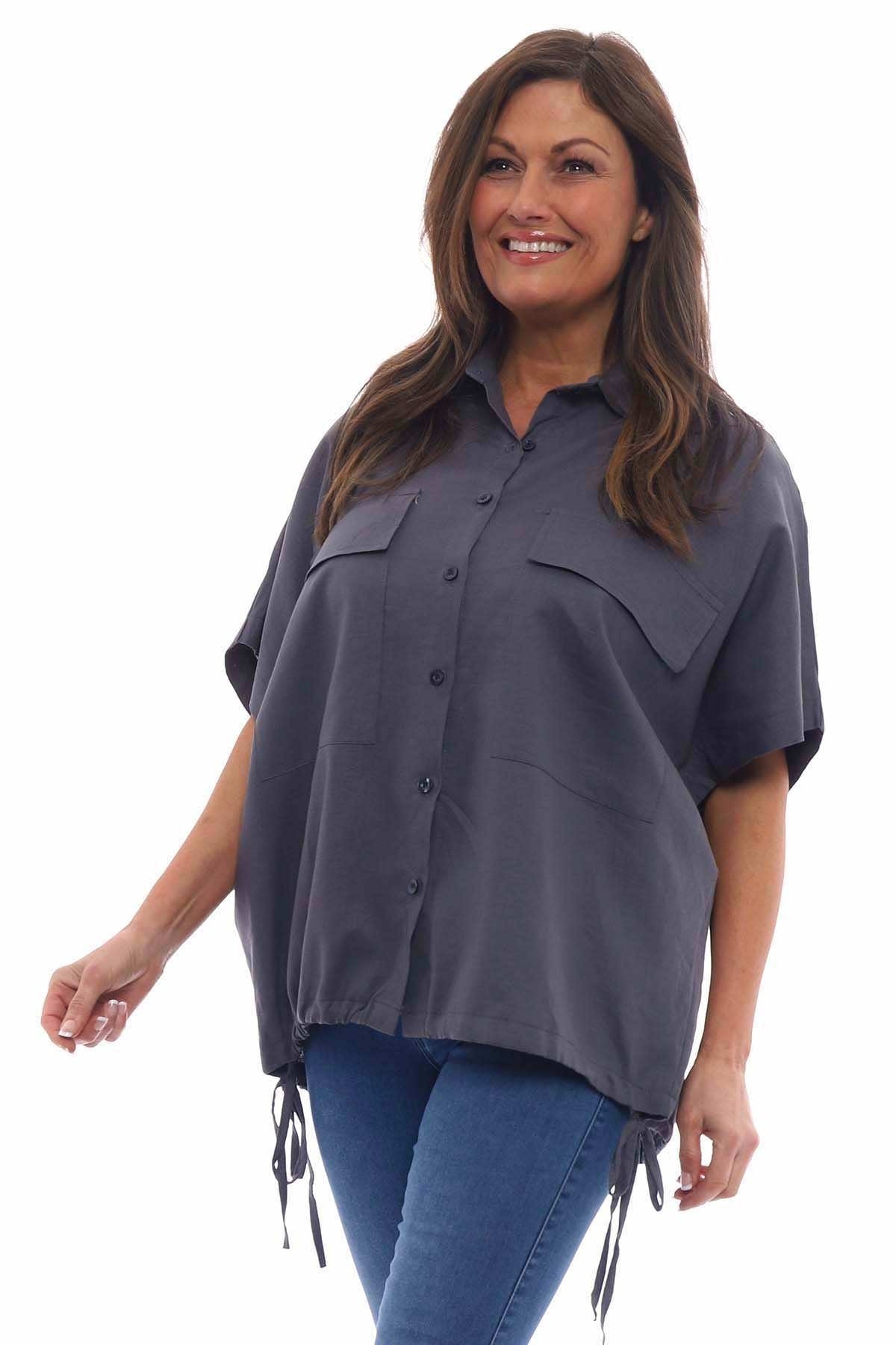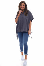 Lucia Drawstring Linen Shirt Charcoal Charcoal - Lucia Drawstring Linen Shirt Charcoal Charcoal