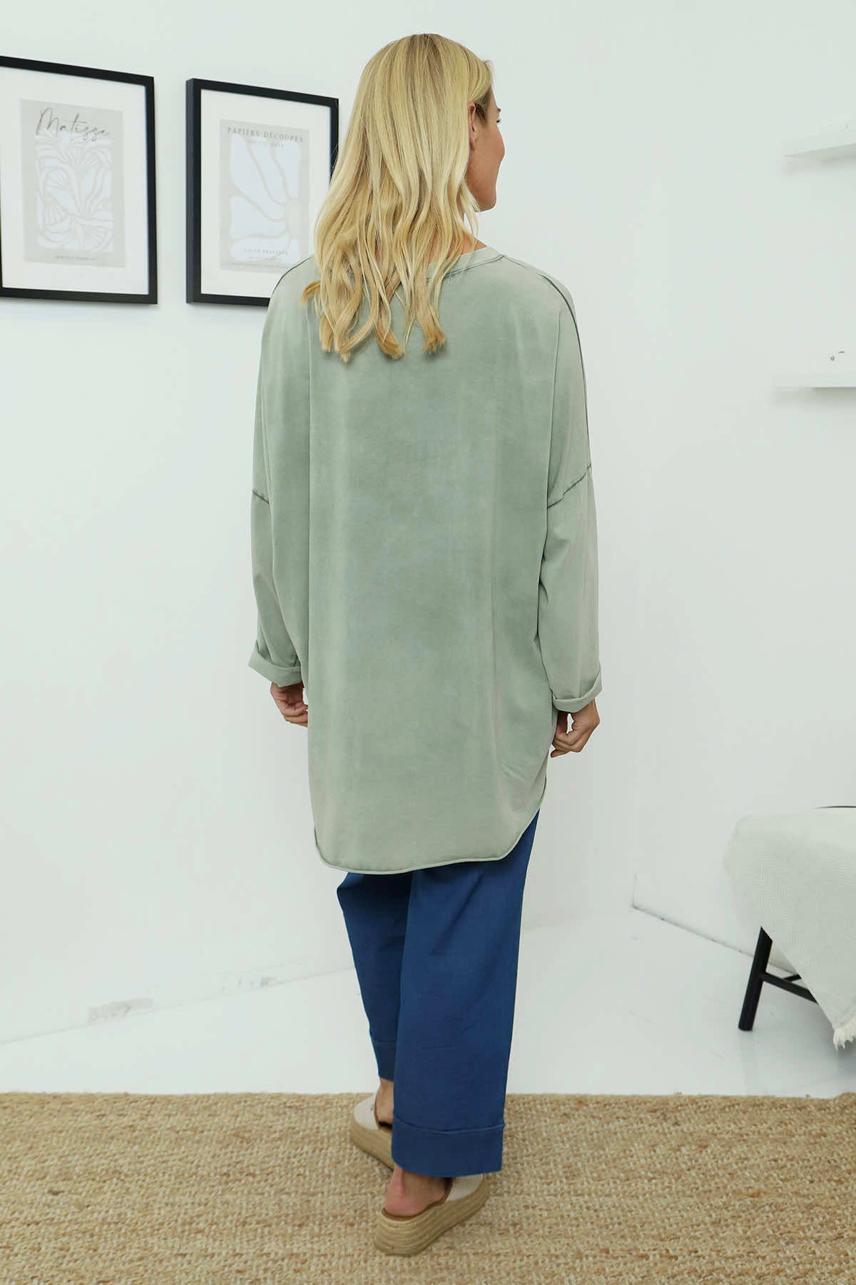 The Maritza Slouch Cotton Top offers comfort with its relaxed V neckline and breathable cotton fabric. The distinctive unfinished hem and vintage wash adds a casual, effortless touch to this versatile piece. Perfect for everyday wear, this top will quickly become your go-to for both comfort and style.