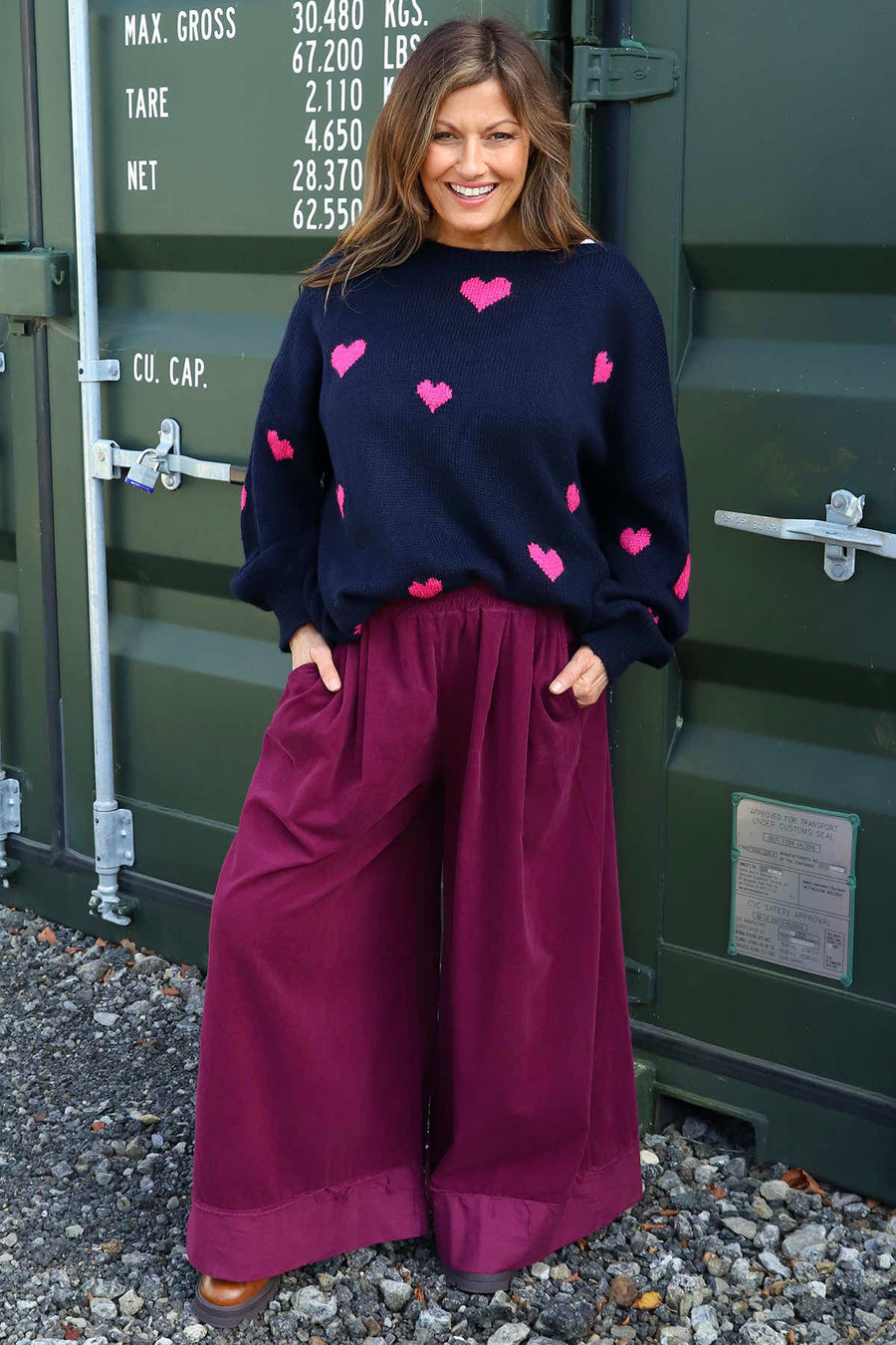 Odette Wide Leg Needlecord Trousers Burgundy Burgundy - Odette Wide Leg Needlecord Trousers Burgundy Burgundy