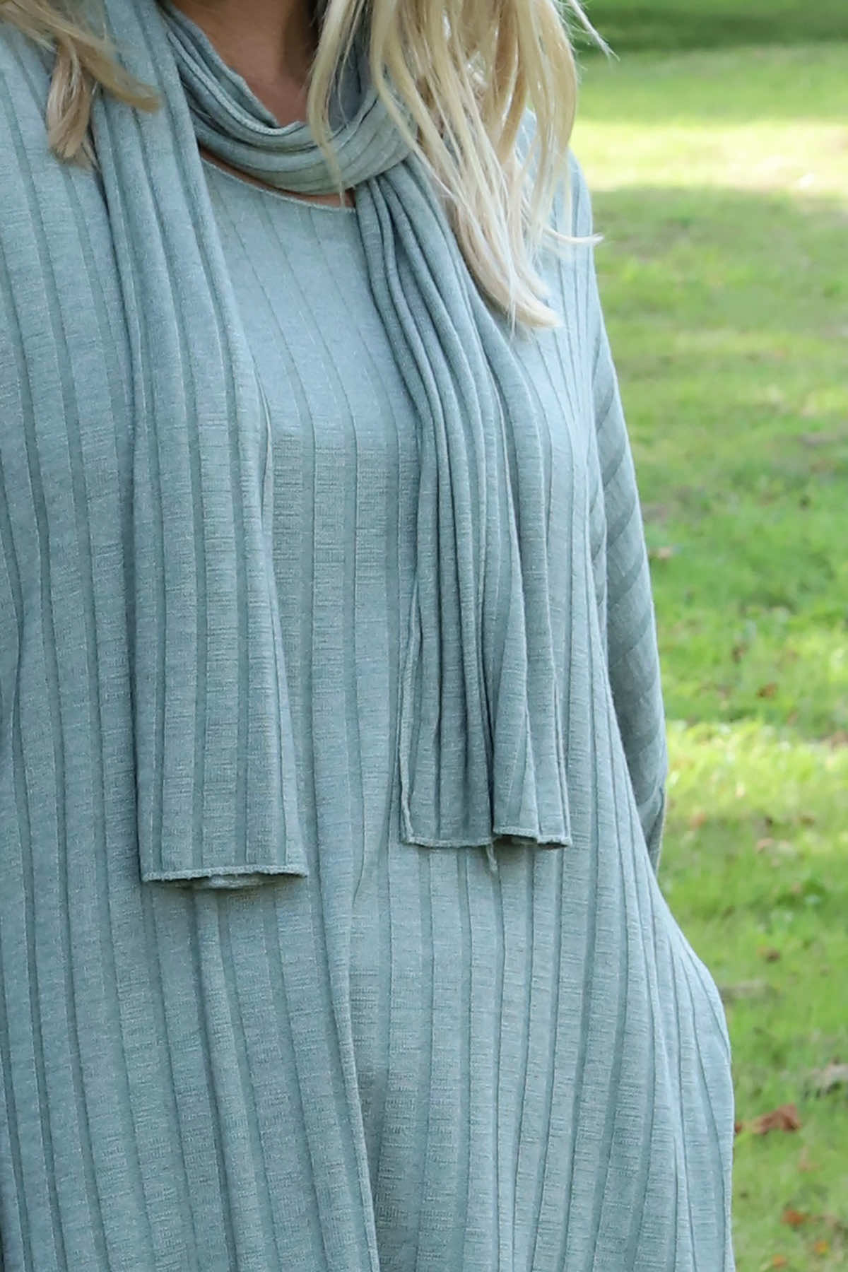 Elevate your wardrobe with the Santana Knitted Scarf Top, designed for effortless style and comfort. Featuring a wide ribbed texture and a flattering round neckline, its long sleeves keep you cosy while maintaining a chic look. The separate matching scarf adds versatility, letting you mix and match for personalized elegance. This top is a perfect blend of warmth and fashion, supporting your confident style every day.