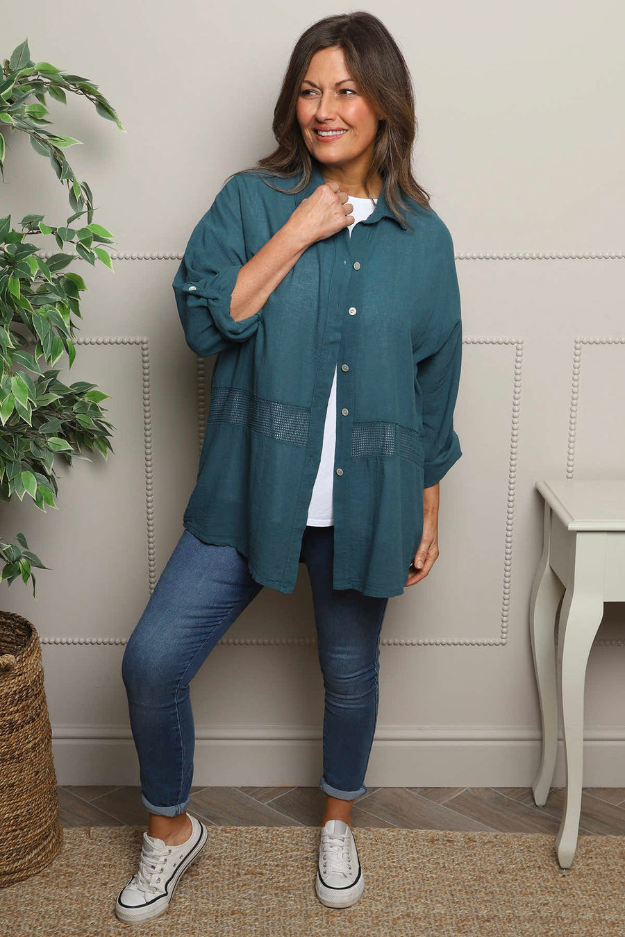 Elevate your everyday wardrobe with the Anisha Cotton Shirt. This classic shirt features a traditional collar and convenient button fastening for easy dressing. The button-back sleeves offer adjustable comfort, while the distinctive mesh textured stripe running around the middle adds visual interest and contemporary flair.