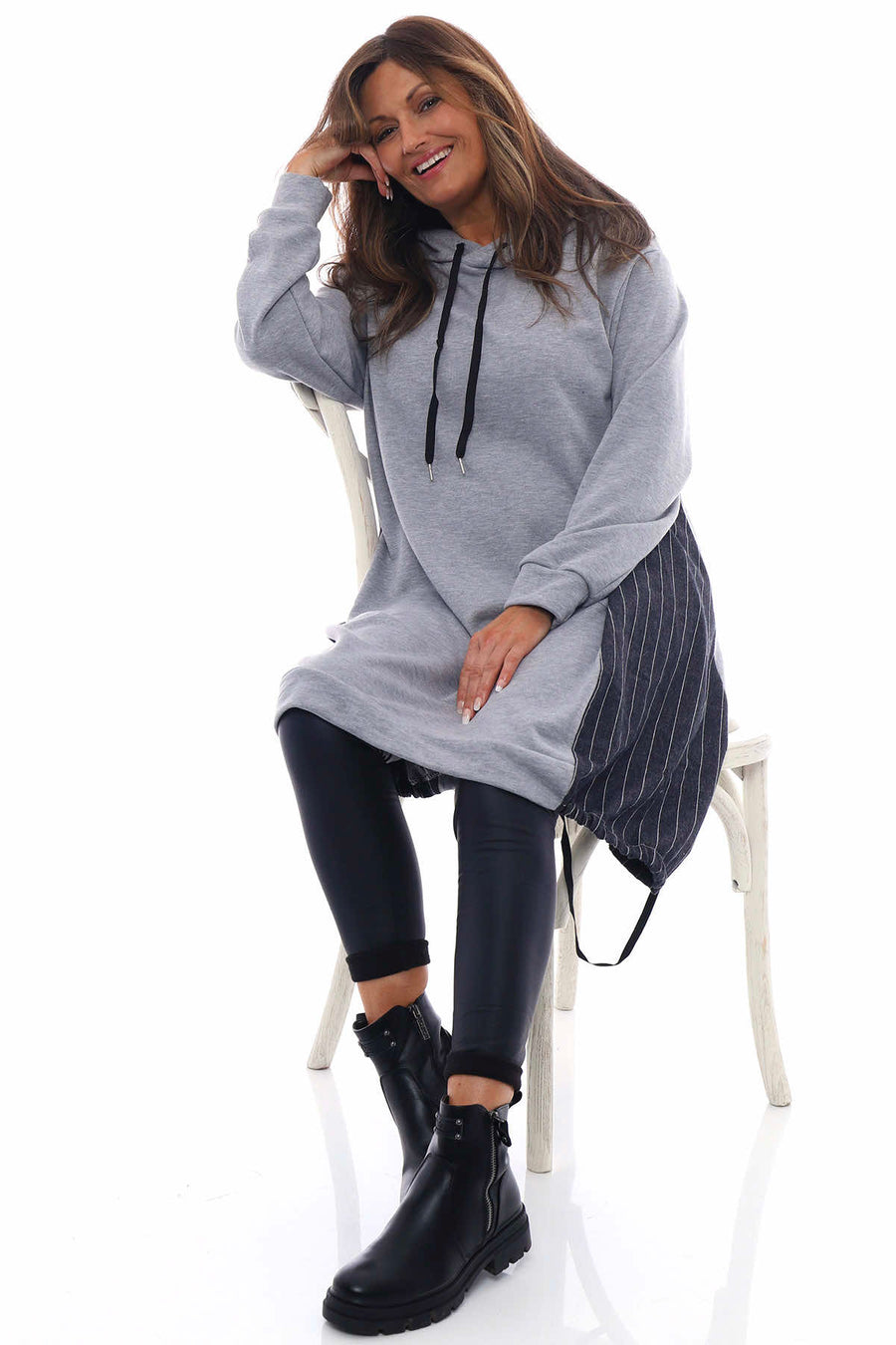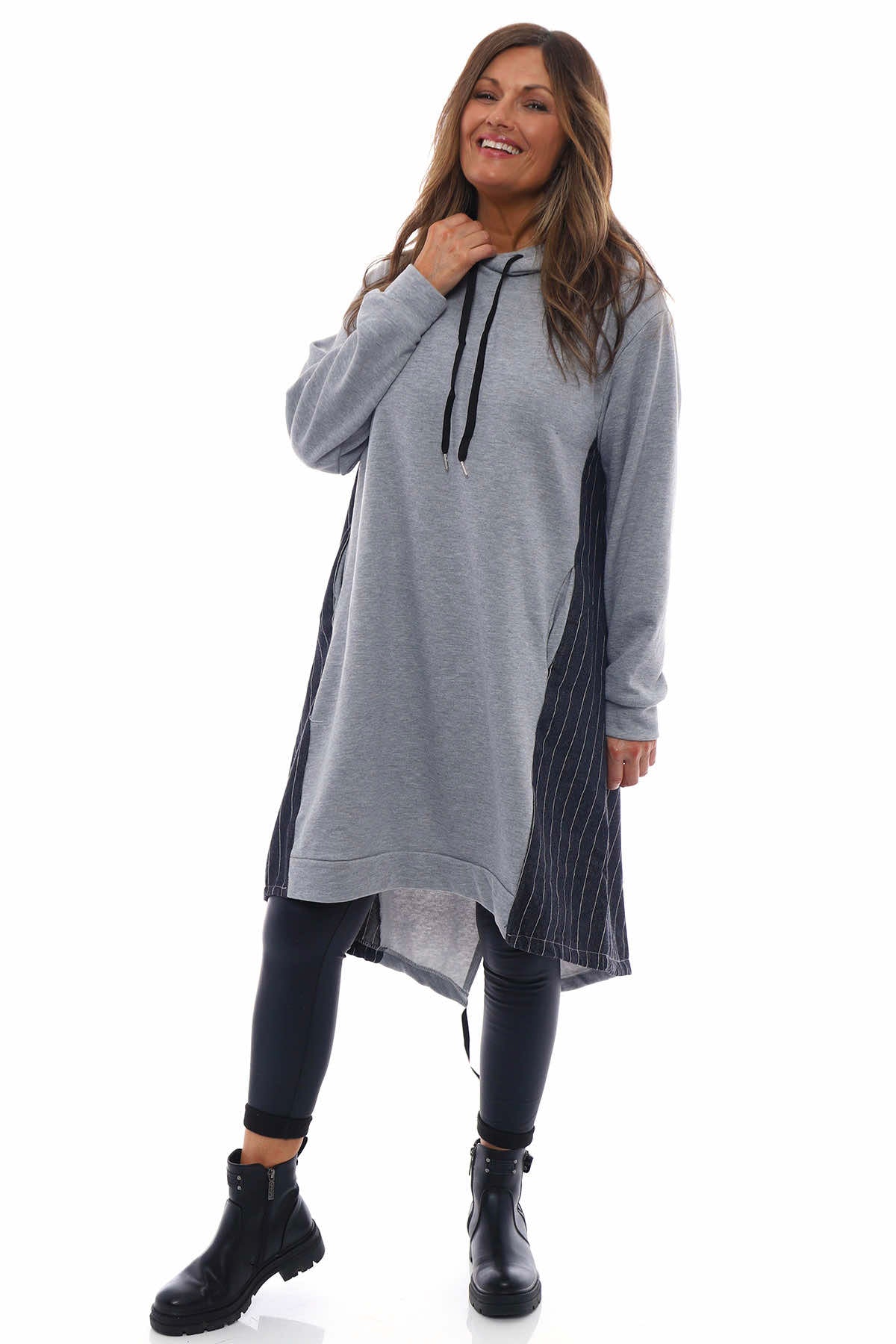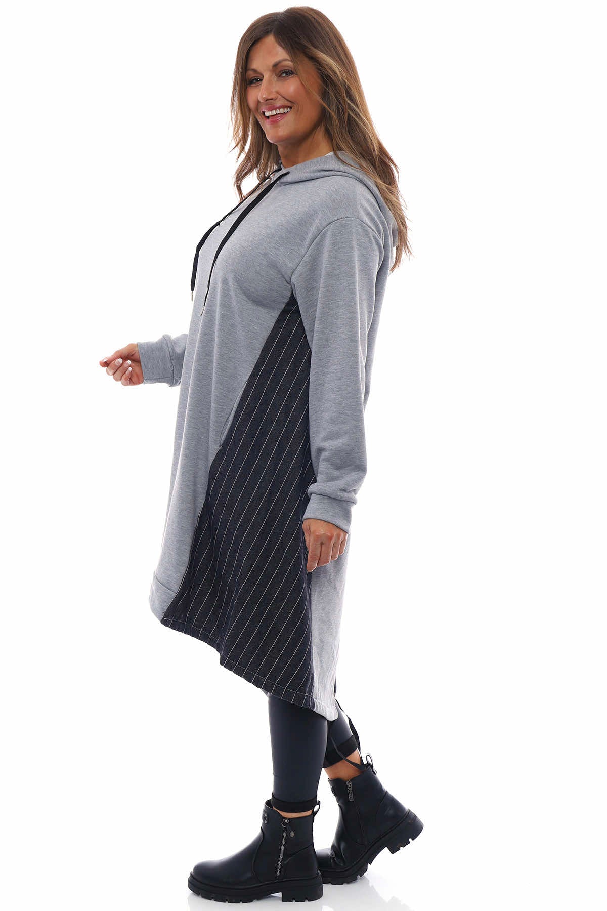 Anya Stripe Hooded Cotton Tunic Marl Grey