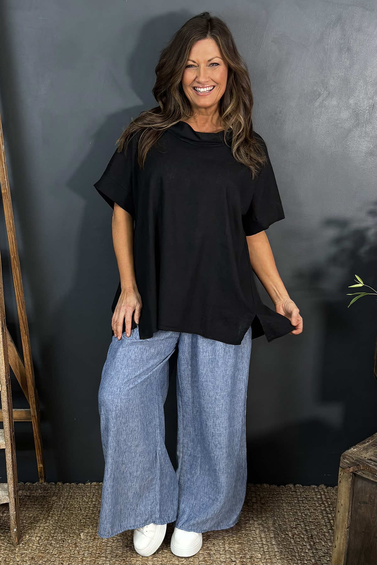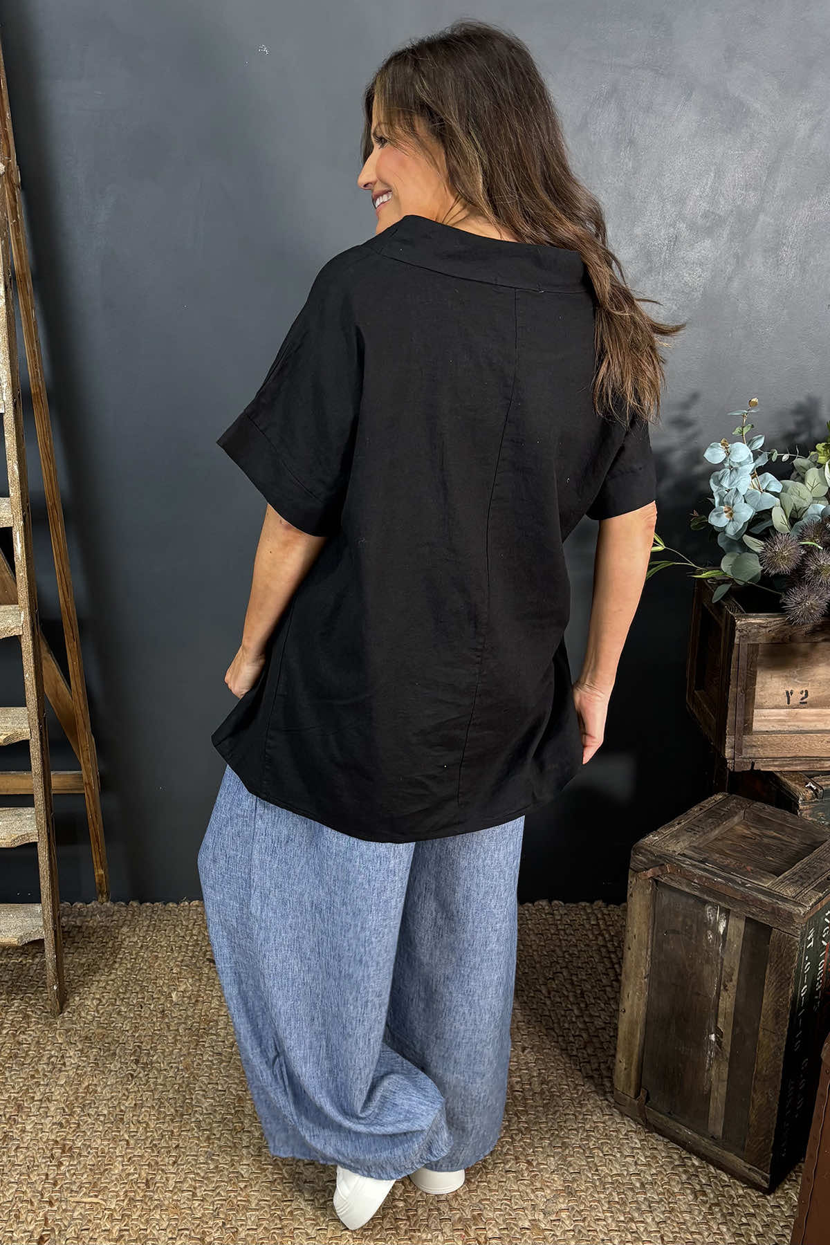 Baines Linen Top Black Black - Baines Linen Top Black Black