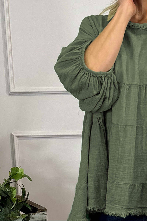 Bingham Tiered Cotton Top Khaki