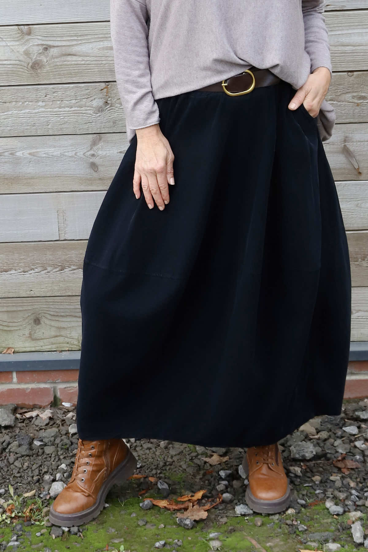 Elevate your style with the Branwen Belted Needlecord Skirt. Crafted from soft needlecord fabric, it offers a comfortable and stylish fit. Featuring handy pockets and an elasticated waist, it ensures ease and practicality throughout your day. The included belt adds a touch of sophistication, making this skirt a perfect choice for versatile, confident looks.