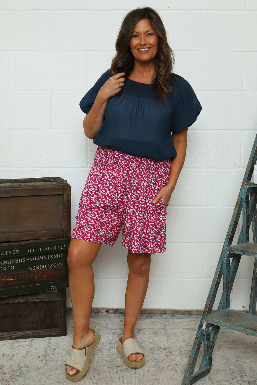 Bude Puff Sleeve Cotton Top Navy