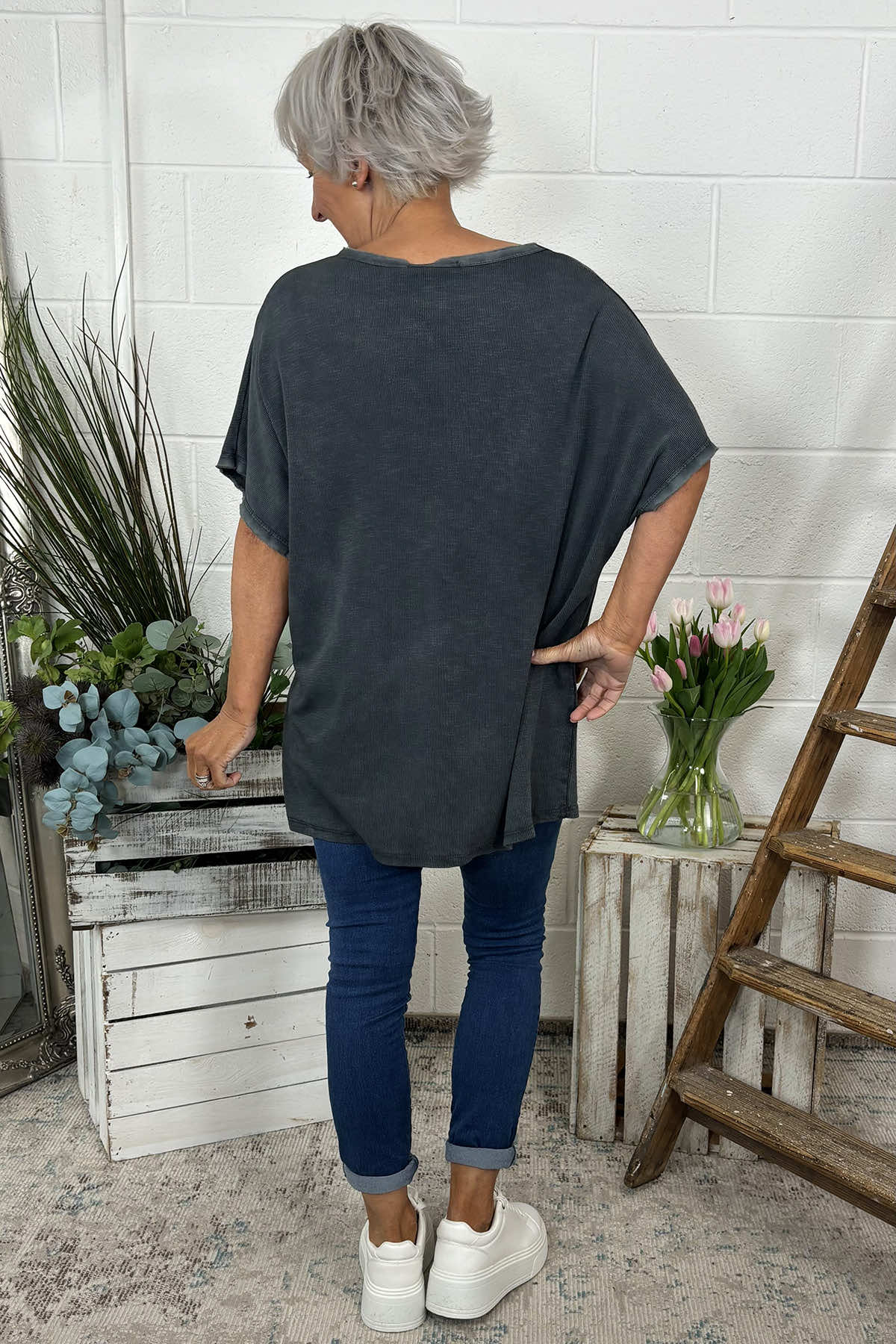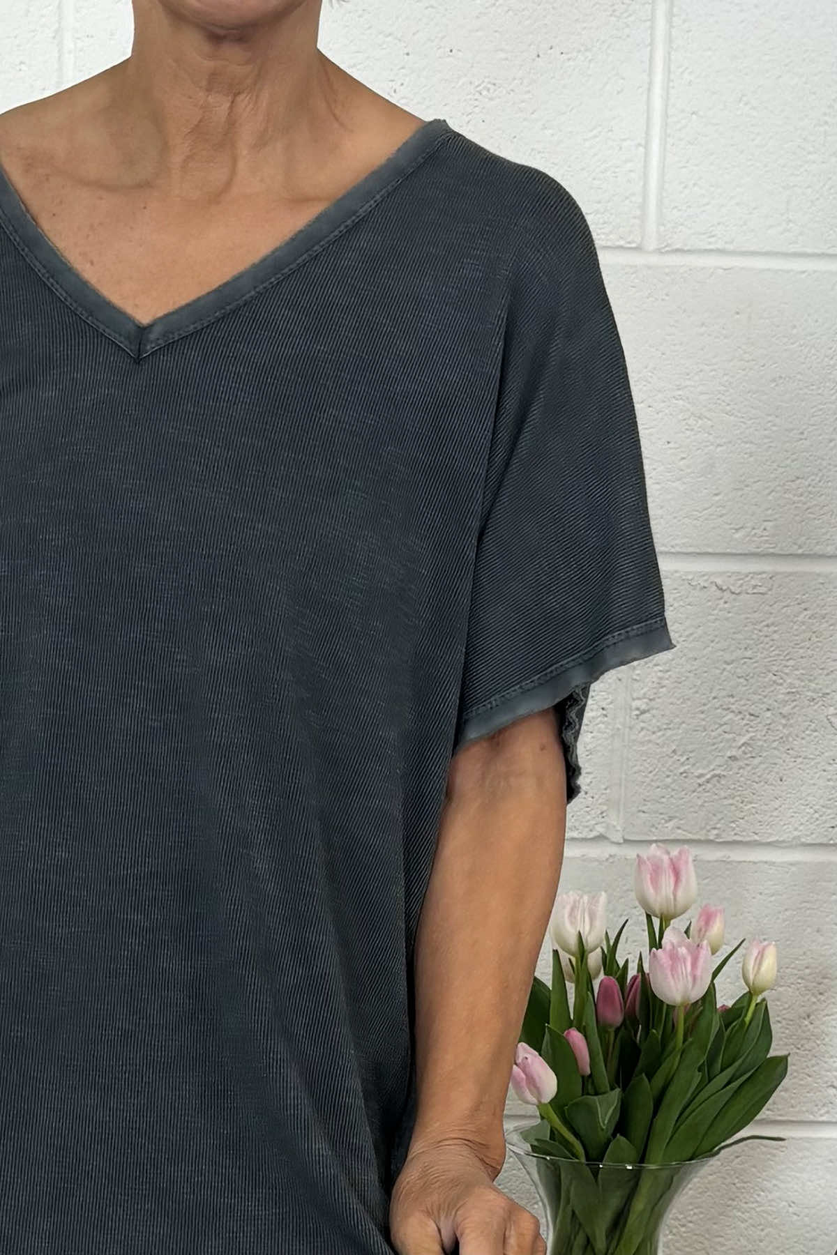 Burford V-Neck Top Charcoal Charcoal - Burford V-Neck Top Charcoal Charcoal