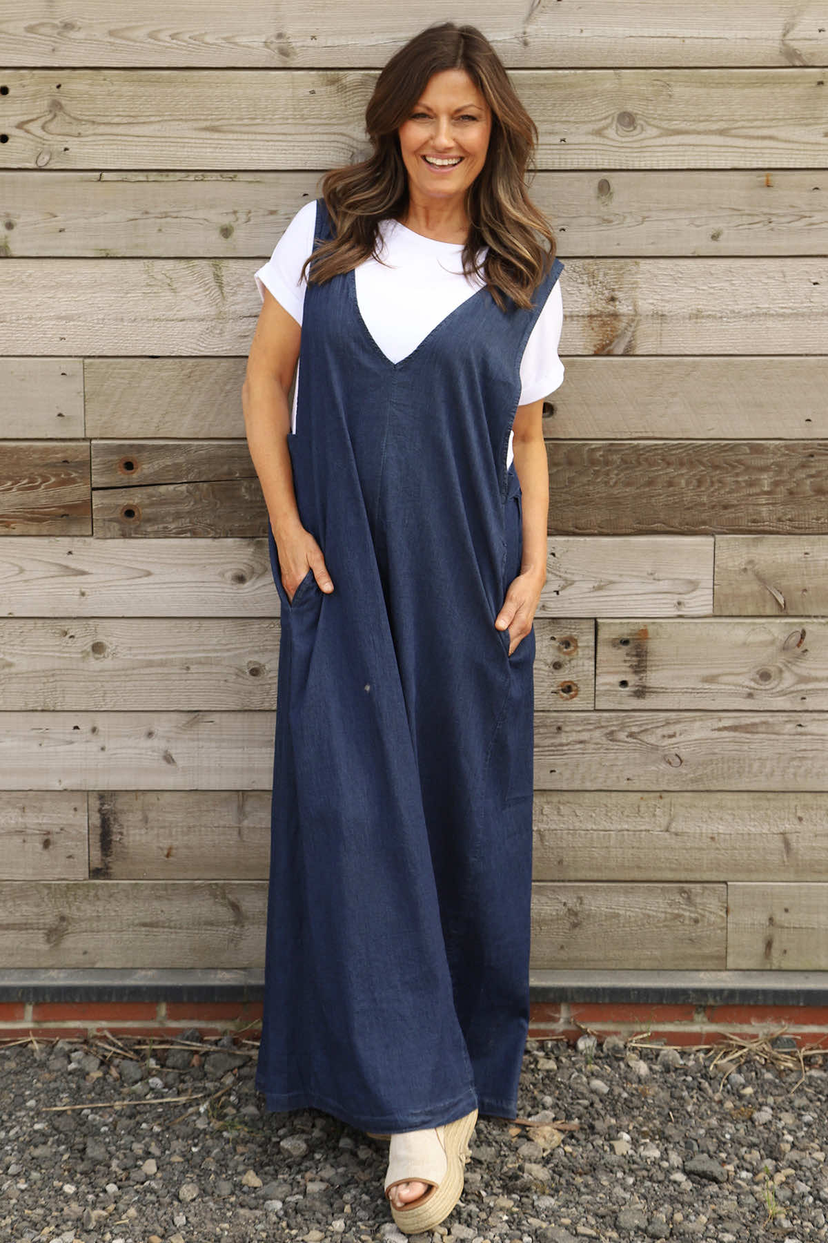 Introducing the perfect summer dress - the Cara Denim Dress! Featuring a flattering V neckline, functional pockets and made with comfy cotton fabric for an authentic denim look. Layer it with your favourite t-shirt for a casual and stylish outfit. Embrace carefree summer days with this must-have dress.