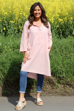 Add the versatile and stylish Davina Linen Tunic to your wardrobe! Made of 100% linen, this tunic features a v-neckline and pockets for convenience. Wear it as a tunic or a dress - perfect for warmer months or holidays! A must-have for any fashion-forward individual.
