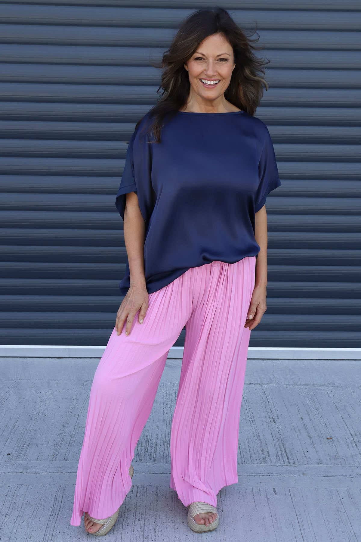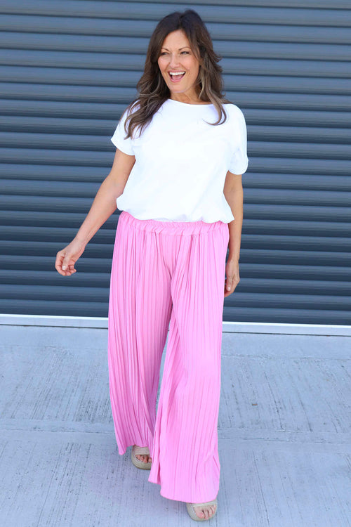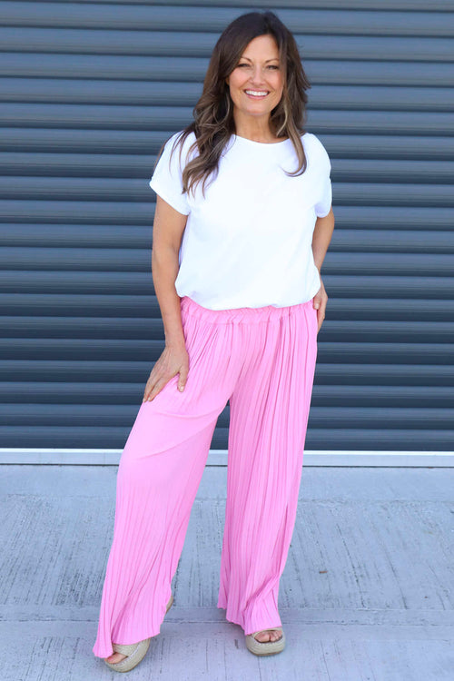 Emira Pleated Wide Leg Trousers Pink Pink - Emira Pleated Wide Leg Trousers Pink Pink