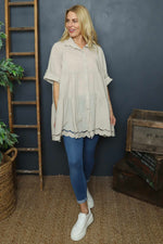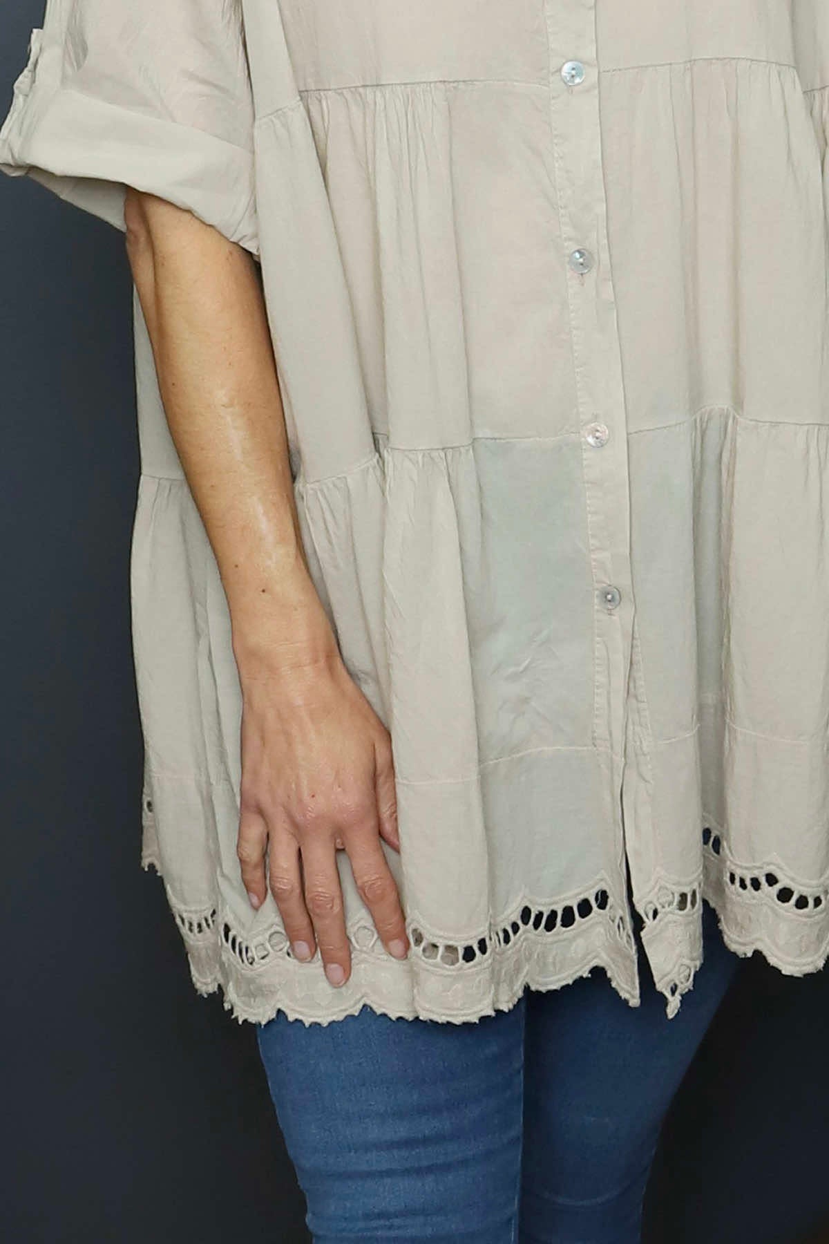 Ermina Tiered Cotton Shirt Stone Stone - Ermina Tiered Cotton Shirt Stone Stone