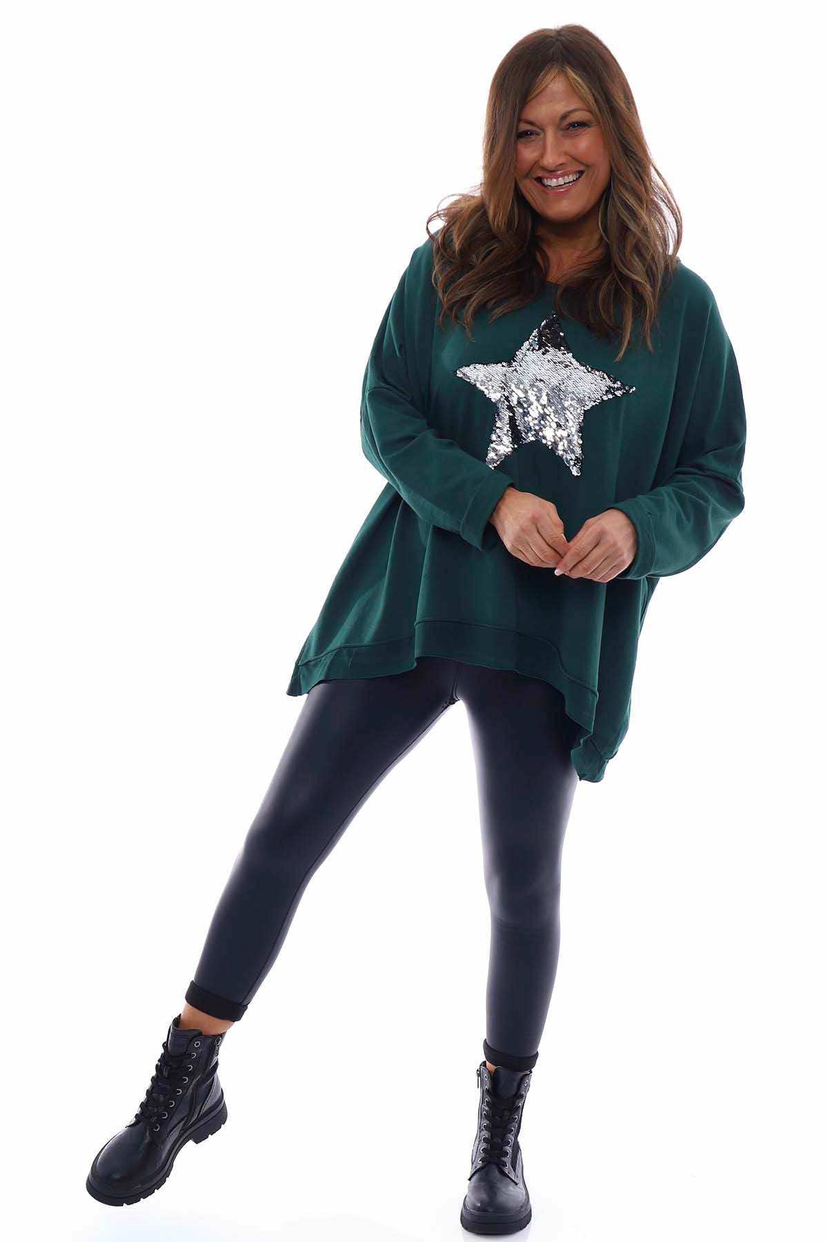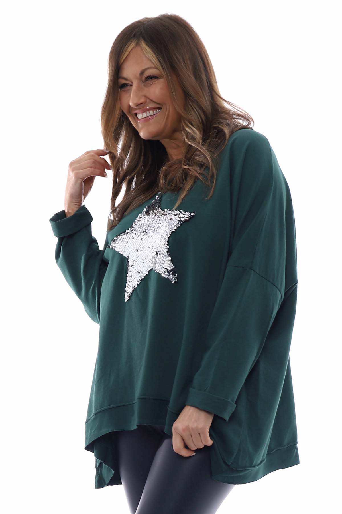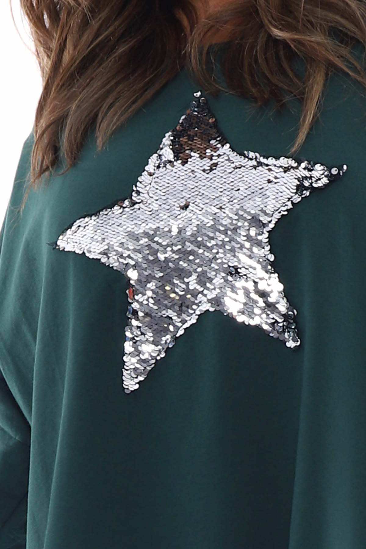 Selsey Sequin Star Cotton Top Bottle Green Bottle Green - Selsey Sequin Star Cotton Top Bottle Green Bottle Green