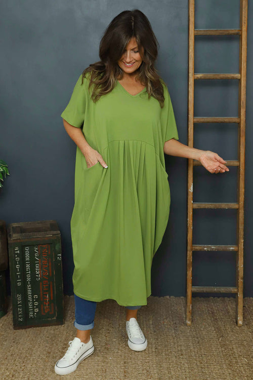 Fenella Cotton Dress Olive Olive - Fenella Cotton Dress Olive Olive
