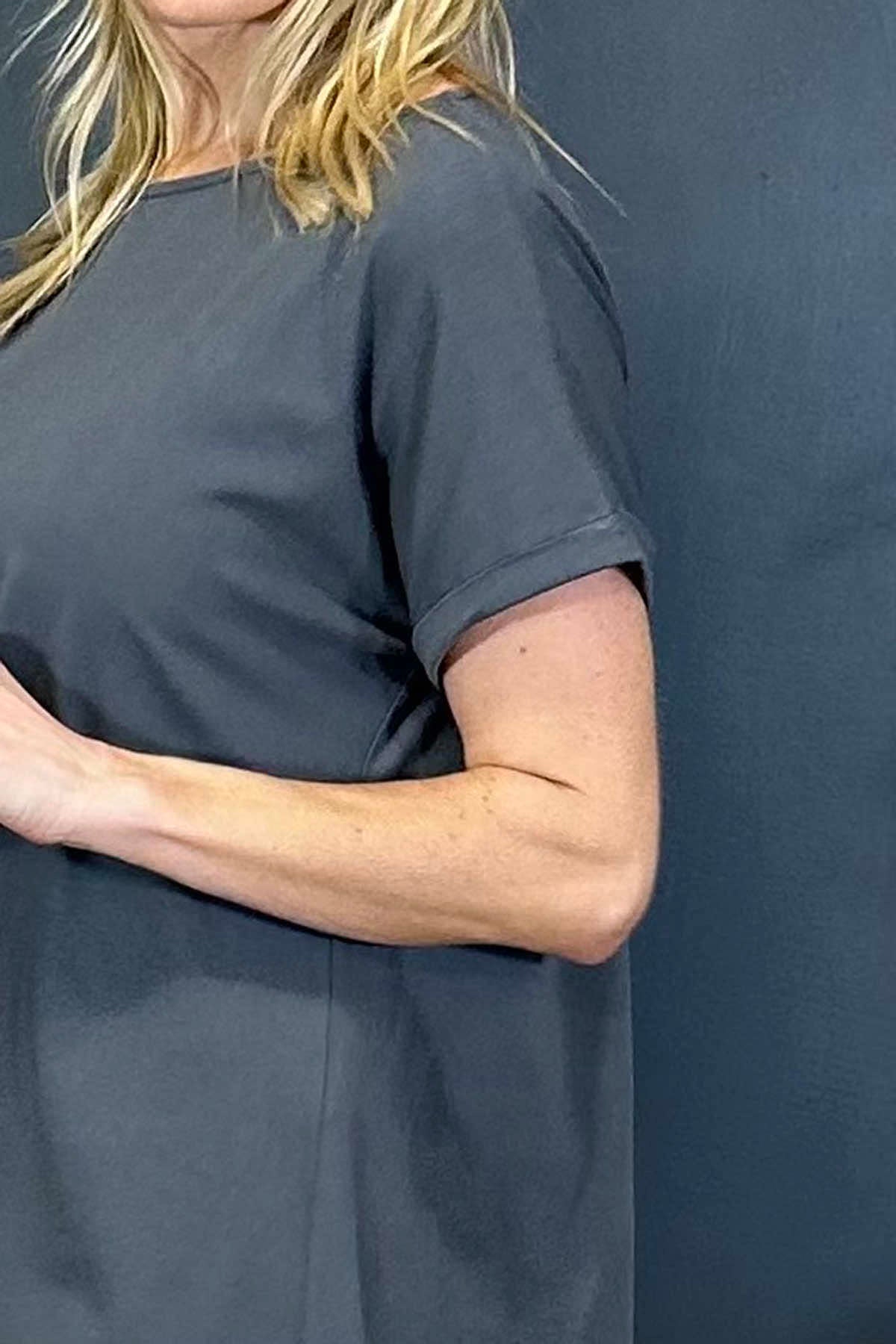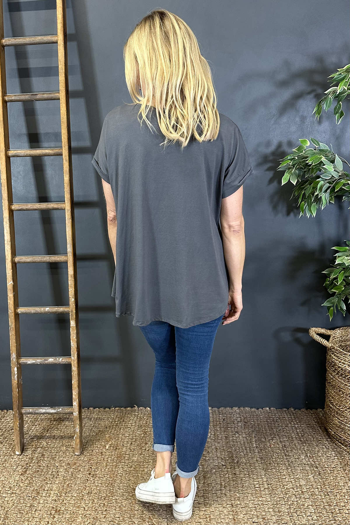 Introducing the Genevieve Cotton Tee, a classic essential for any wardrobe. Made from soft cotton, this tee can be worn on its own or paired with other pieces for a cosy layered look. With its turn back sleeves and round neckline, it's the perfect go-to for any occasion.