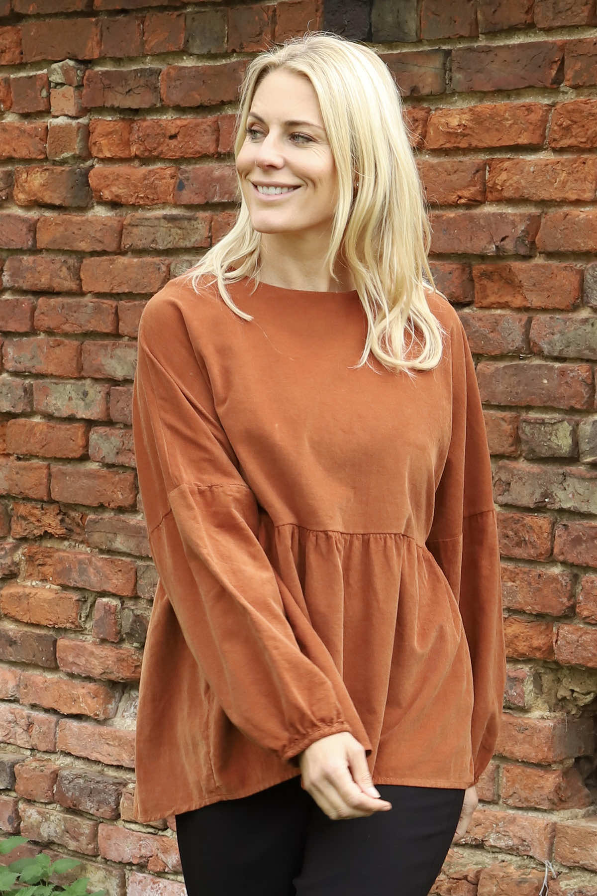 Refresh your wardrobe with the Geraldine Needlecord Top, designed for comfortable style. Featuring long sleeves with elasticated cuffs, it offers a soft fit that moves with you. The round neckline and delicate keyhole back add subtle elegance, while the subtle frill provides a feminine touch. Crafted from textured needlecord fabric, this top combines cosy warmth and timeless appeal for everyday wear.