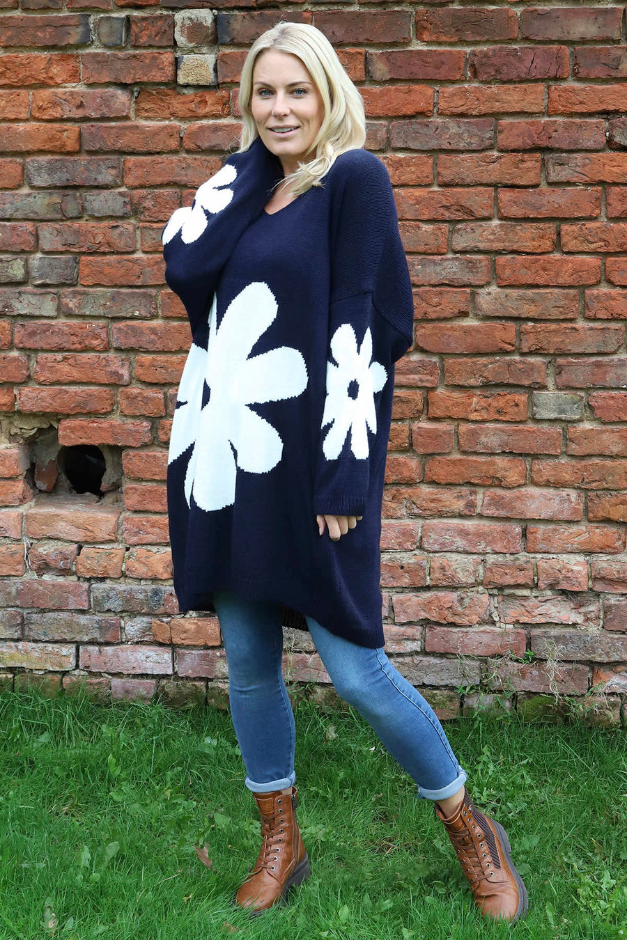 Upgrade your wardrobe with our Joan Knitted Jumper. Its V neckline brings a touch of elegance, while the large flower design on the body and sleeves adds a stylish touch. Made with soft knit material, this best-selling jumper is a must-have for the season.