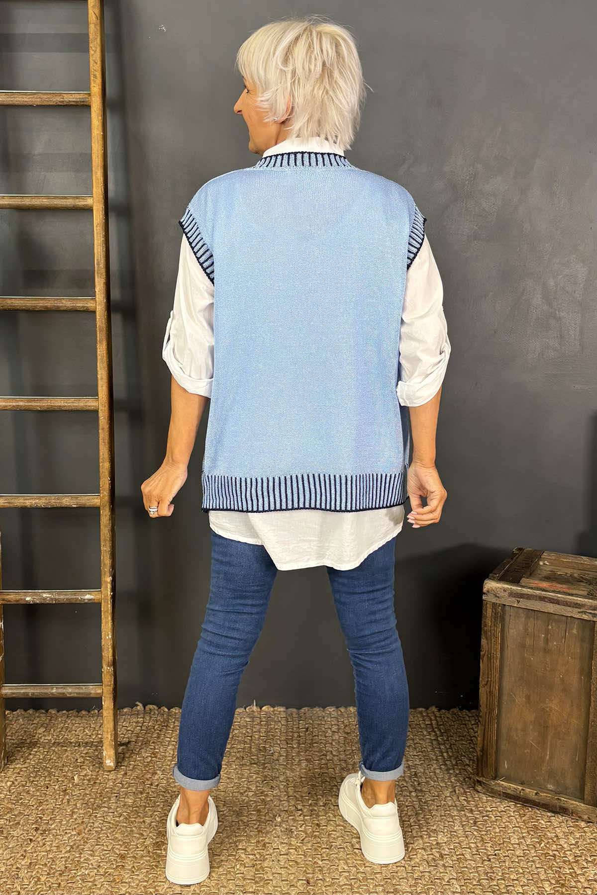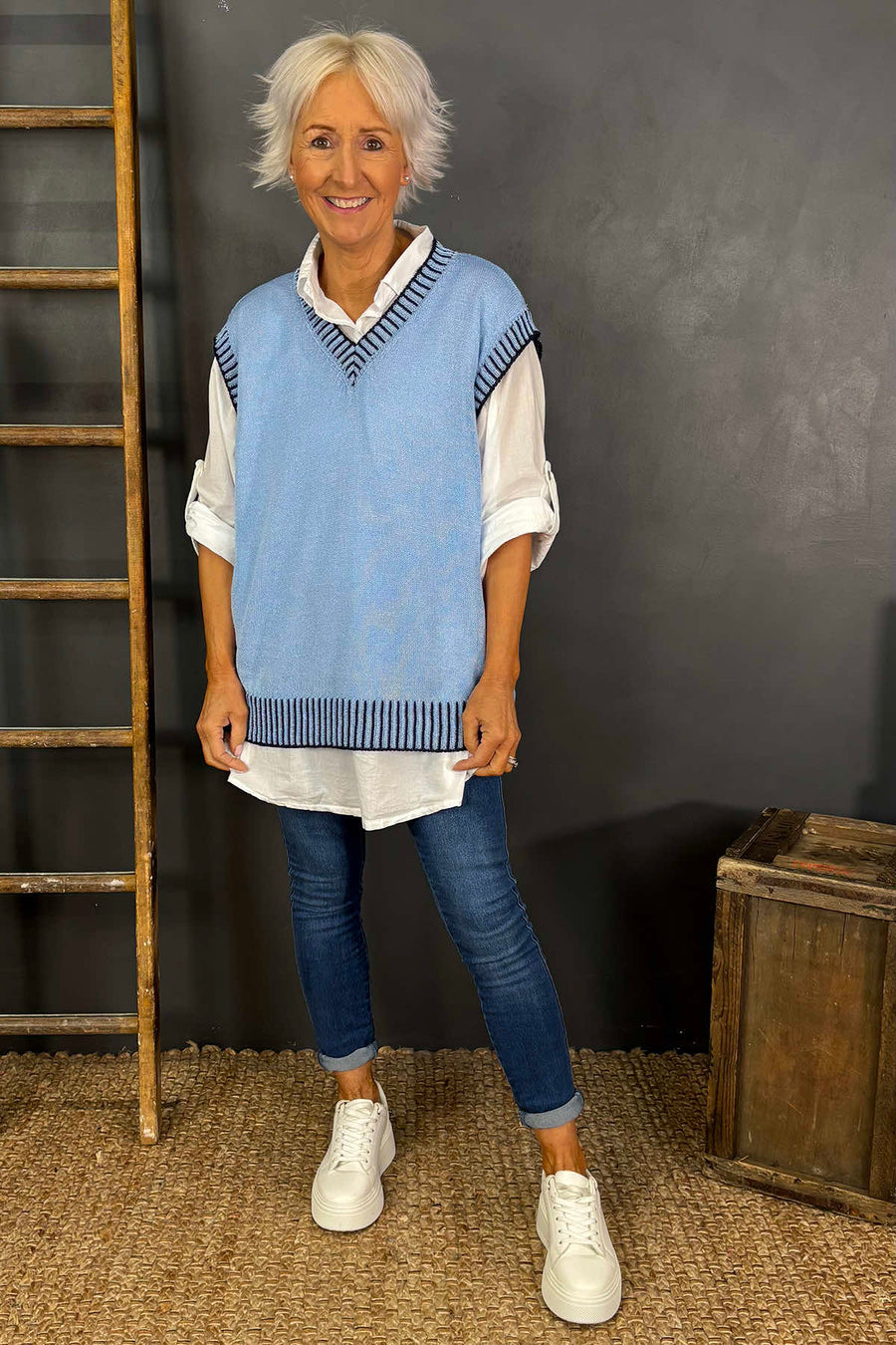 Elevate your style with the Jovita Fine Knit Tank Top. Crafted from fine knit fabric, this tank top features a V neckline, sleeveless design and contrasting stitching details around the neckline, arm, and hemline. Wear it on its own or layer it over your favourite tee for a chic and effortless look.