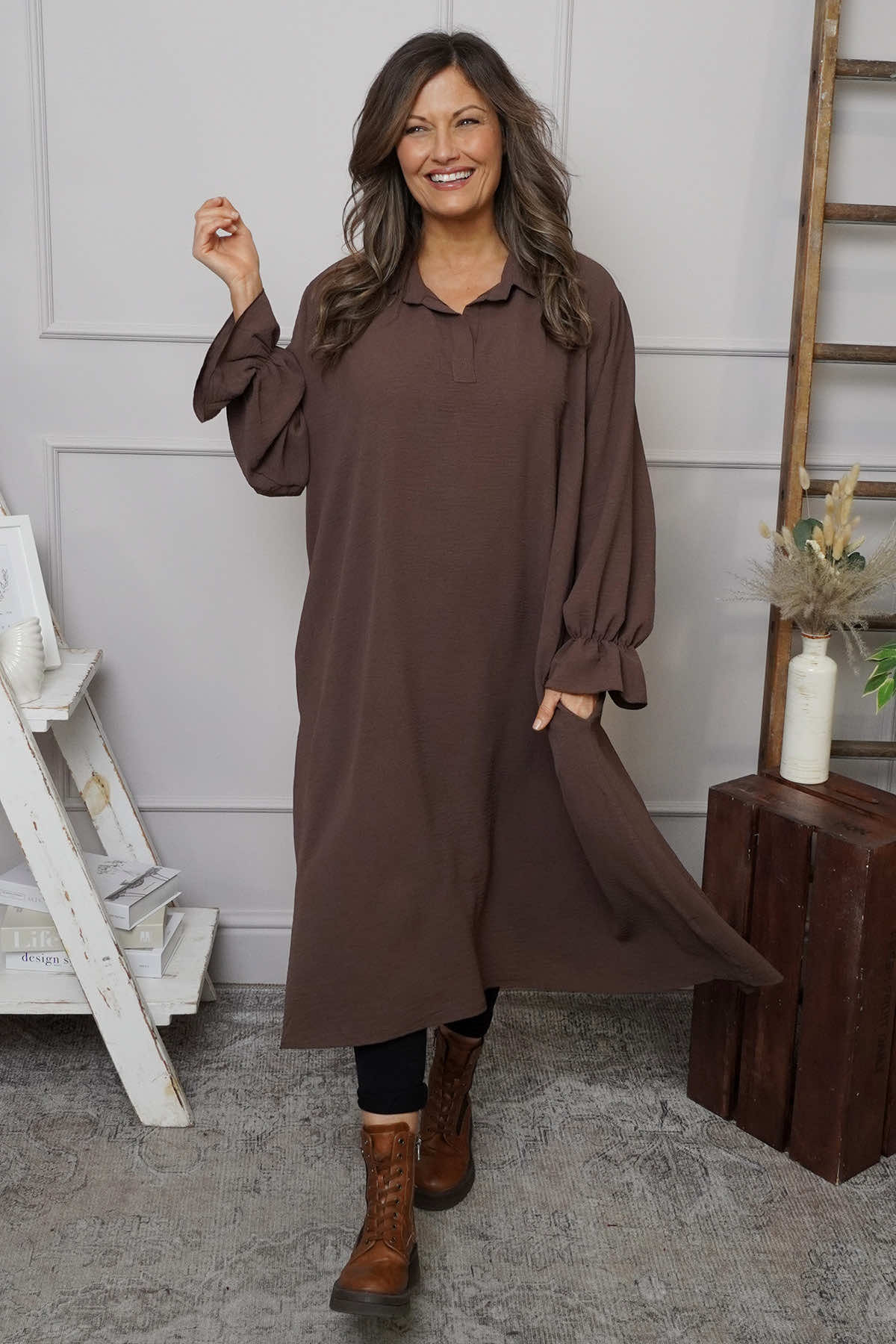 Kaya Collared Dress Cocoa