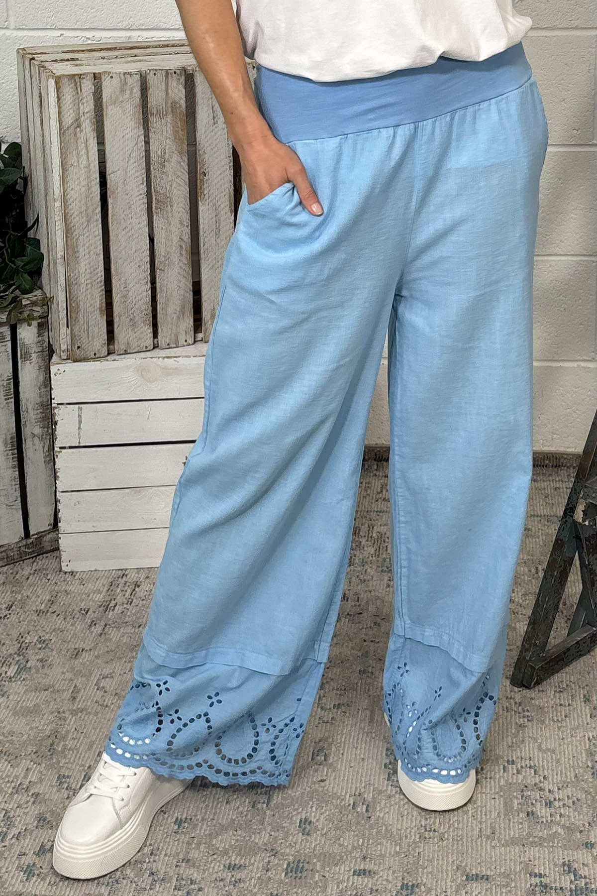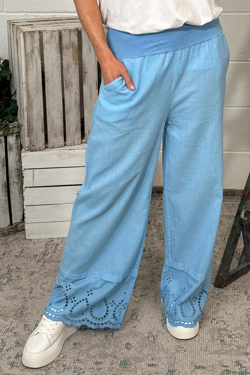 Kelsey Embroidered Linen Trousers Light Blue Light Blue - Kelsey Embroidered Linen Trousers Light Blue Light Blue