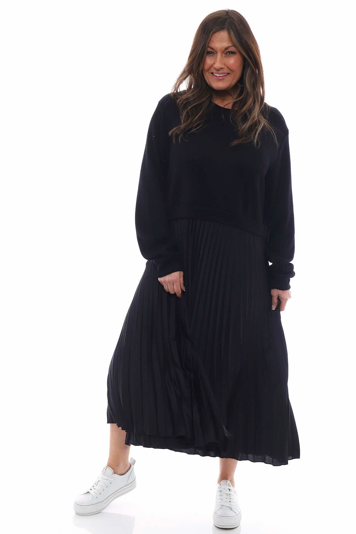 Kinzle Pleated Jumper Dress Black