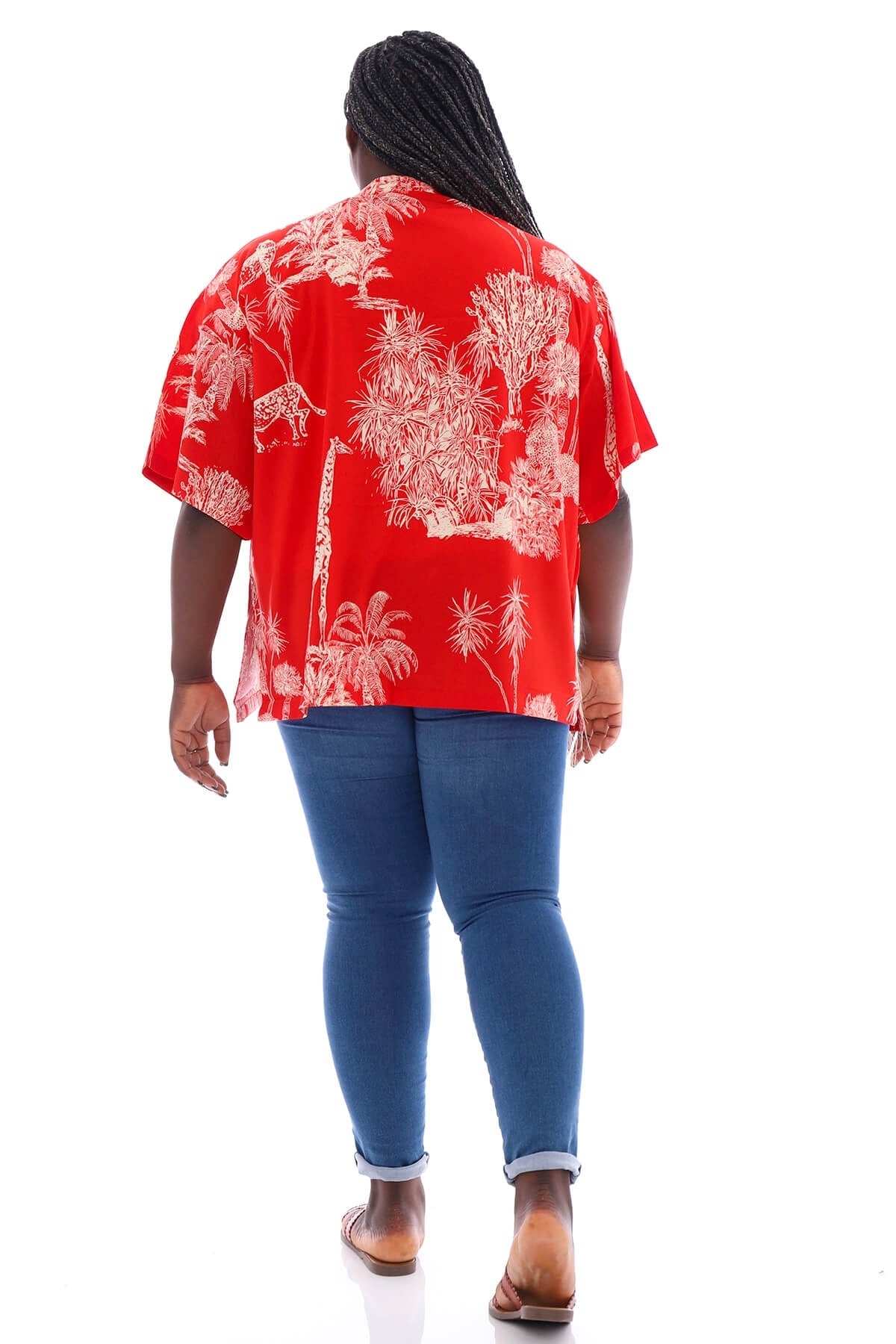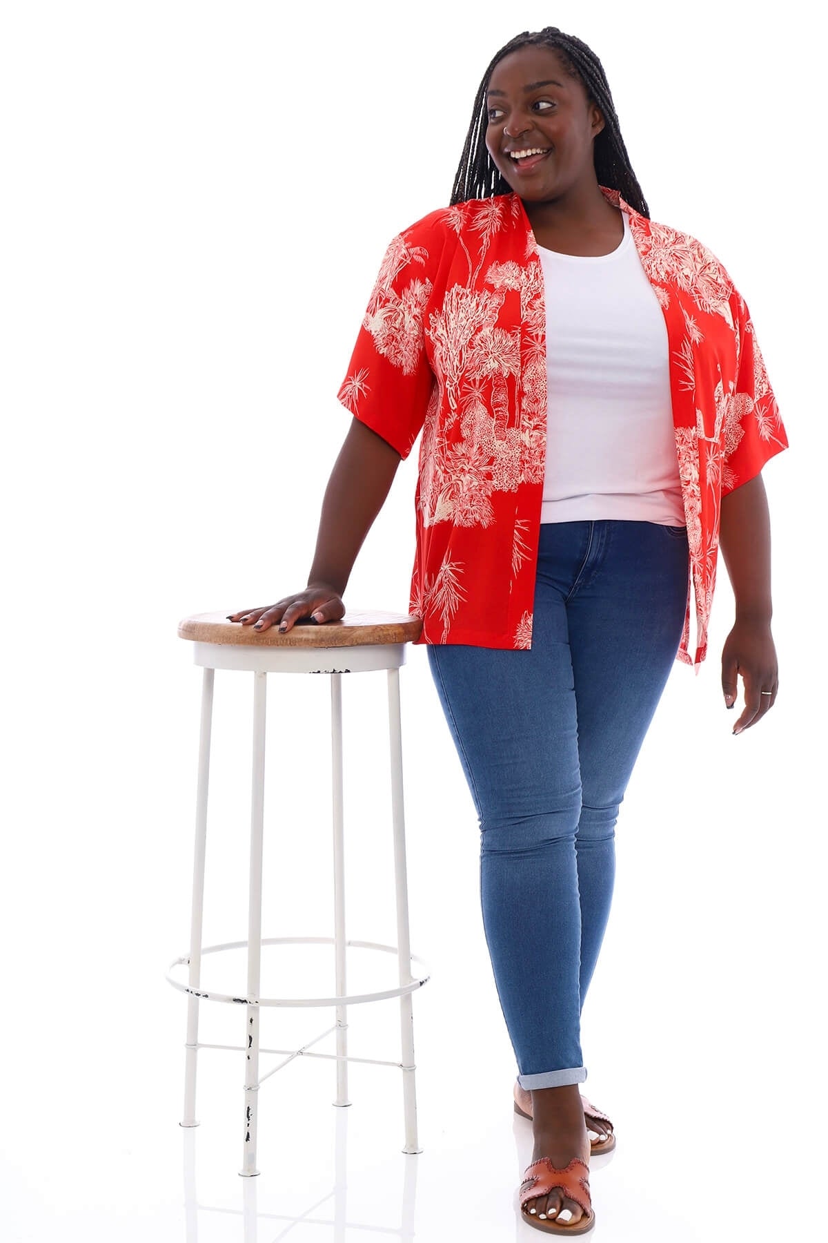 Reinvent your everyday wardrobe with the gorgeous Kit and Kaboodal Melodie Kimono. A lovely vibrant style with an abstract tropic pattern with animal graphics, it has short sleeves and is the perfect length for a cover up. Super easy to style for any occasion, try styling with plain t-shirt, jeans and trainers.