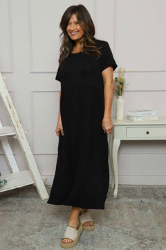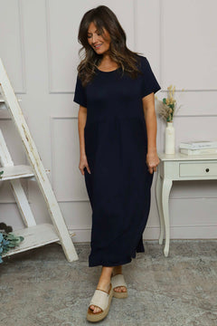 Stay cool and comfy in our Kylie Dress. Featuring short sleeves, round neckline, and pockets for the ultimate convenience. Perfect for any occasion, this dress has got you covered. Upgrade your wardrobe now!