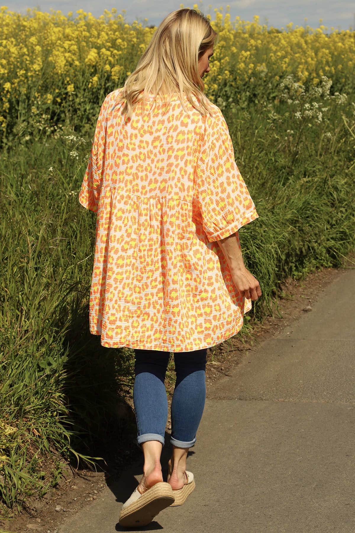 Kynance Leopard Print Top Orange Orange - Kynance Leopard Print Top Orange Orange