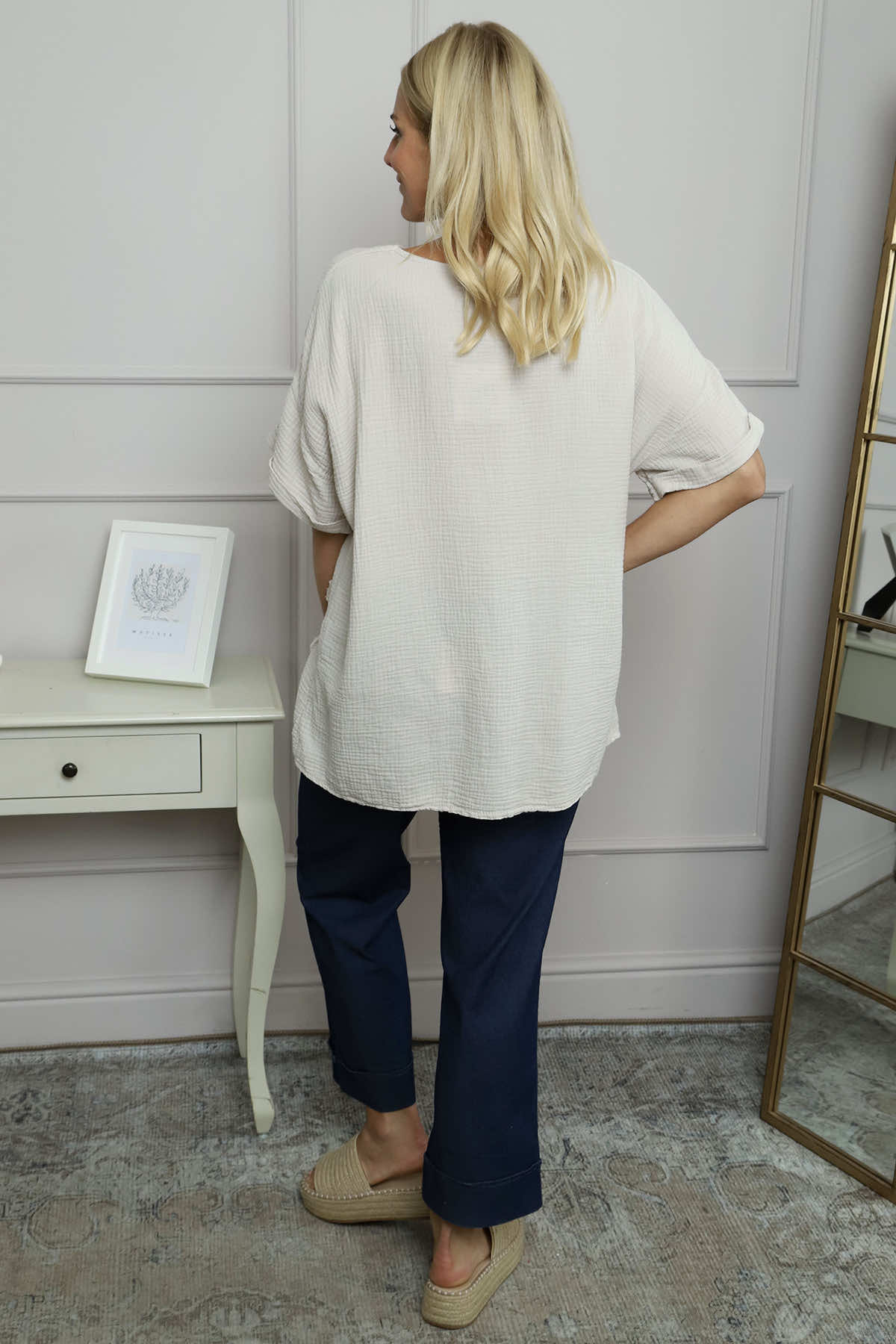 Leonie Crinkle Cotton Top Stone