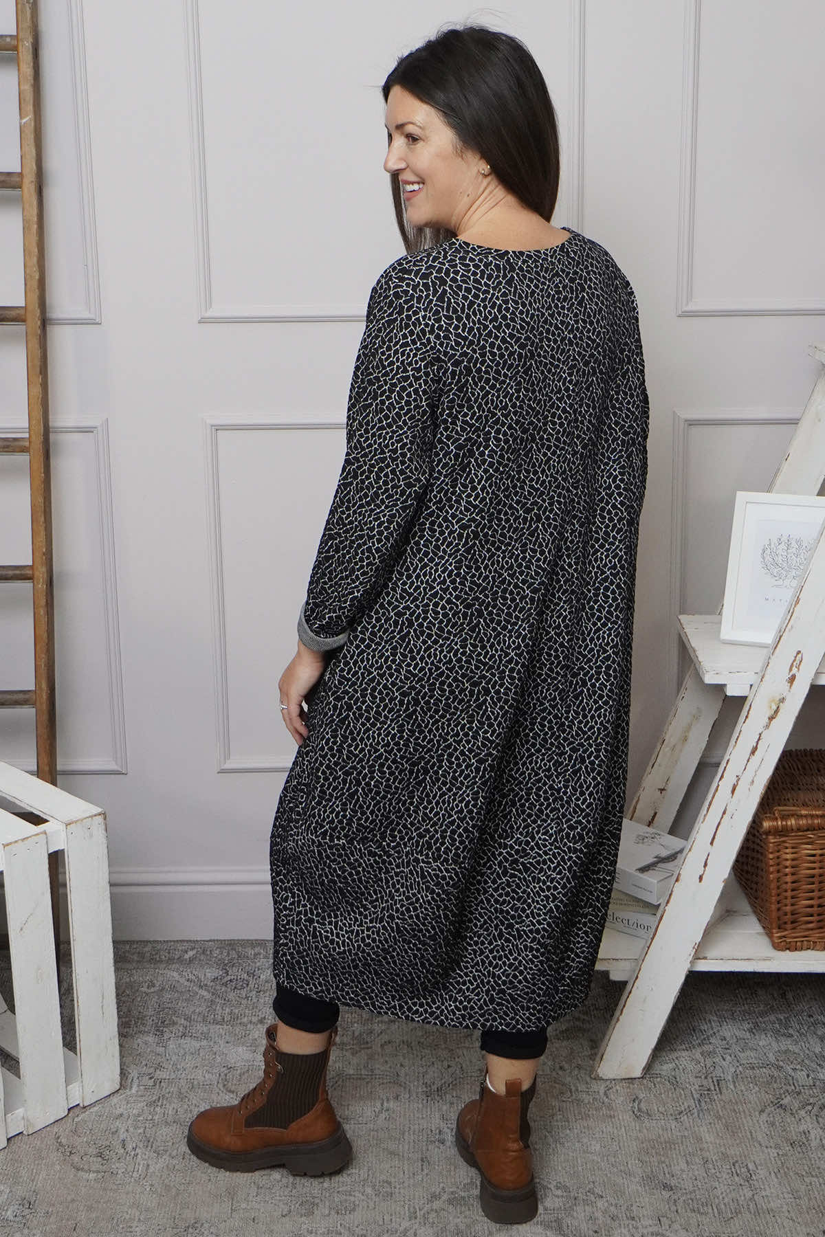 Dress to impress with the Loni Dress, a versatile piece designed to make you feel confident and comfortable. Featuring practical long sleeves and a flattering round neckline, this dress combines everyday wearability with understated elegance. The subtle pattern adds visual interest without overwhelming your look, while thoughtfully placed pockets keep your essentials within reach. Perfect for work, weekend outings, or casual gatherings, the Loni Dress is your go-to choice for effortless style that works as hard as you do.