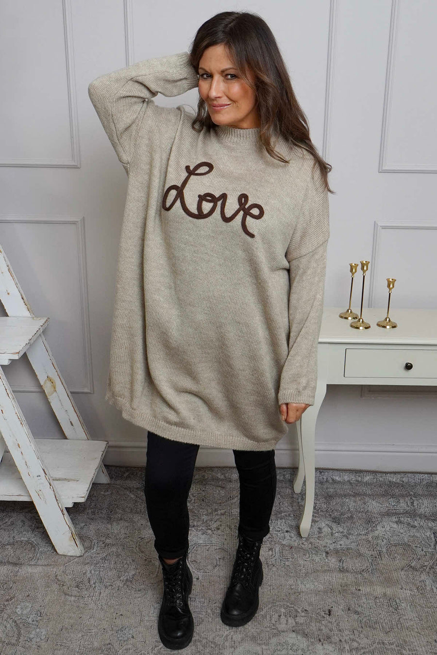 Step out in style with this Love Knitted Jumper Dress, designed to keep you feeling warm and cherished. Featuring a classic round neckline and a charming love design, this cosy piece brings comfort and affection to your everyday wardrobe. Perfect for layering or wearing solo, it's the kind of jumper that wraps you in both softness and style. Ideal for those moments when you want to feel supported and celebrated in what you're wearing.