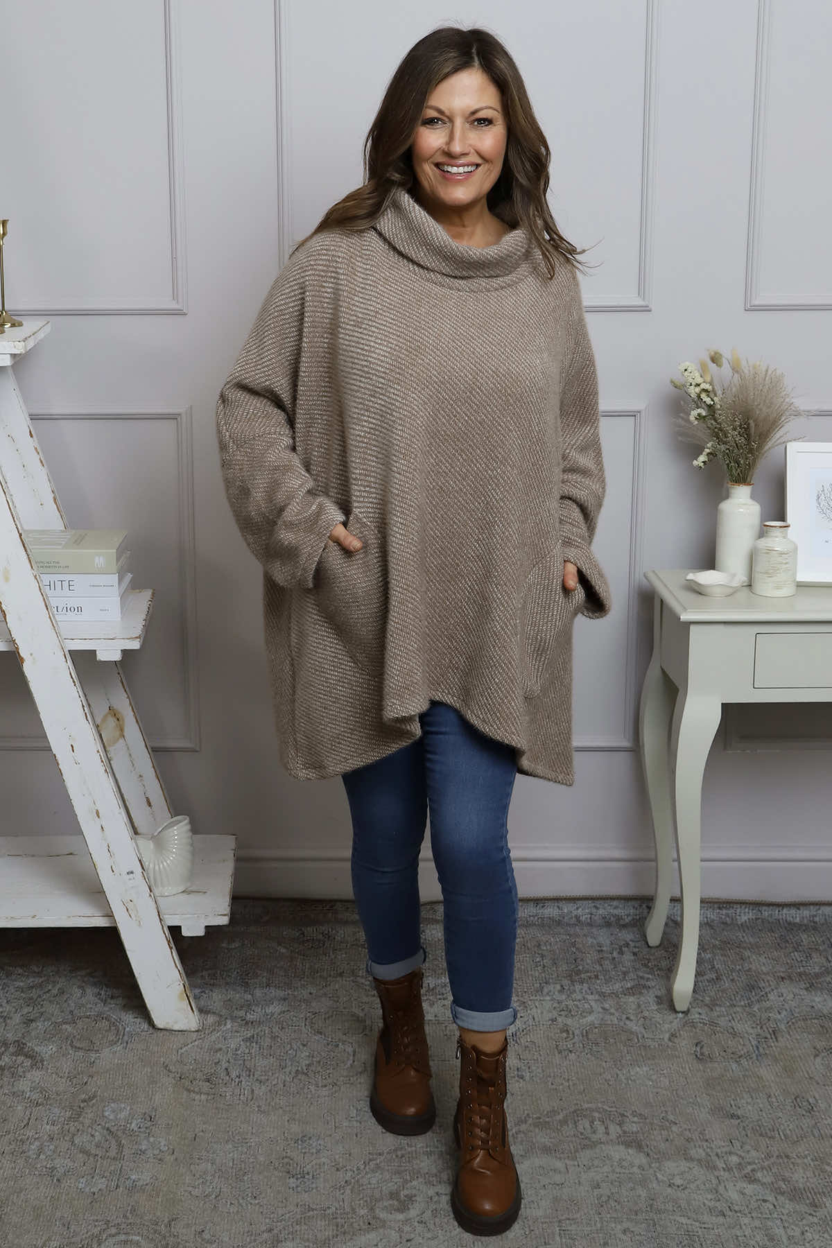 Stay warm with the Luma Cowl Neck Jumper, designed for cosy comfort on chilly days. Its soft fabric features a stylish cowl neck and long sleeves to keep you snug, while practical pockets provide a convenient place to keep your hands warm or store small essentials. A perfect companion for relaxed weekends or layering under your favourite coat.