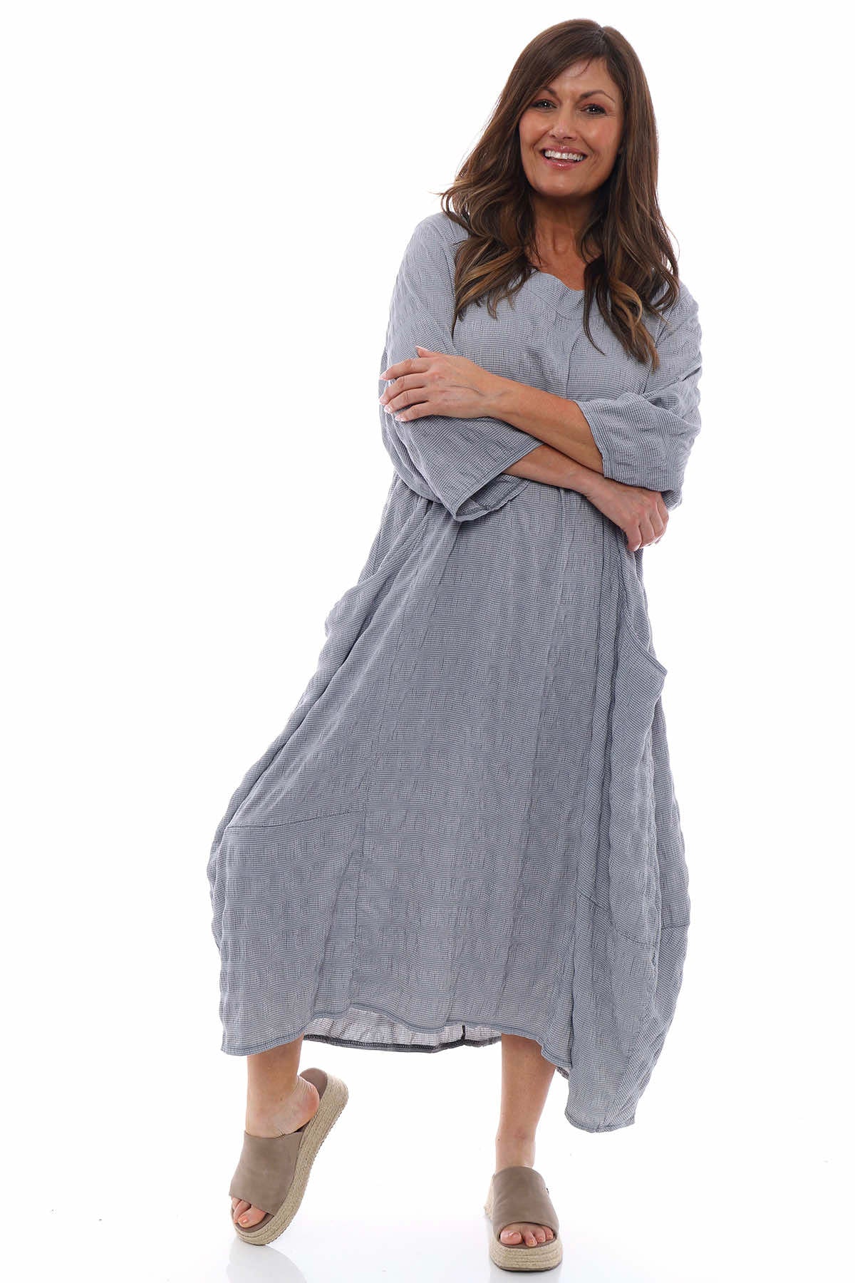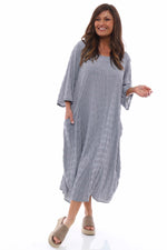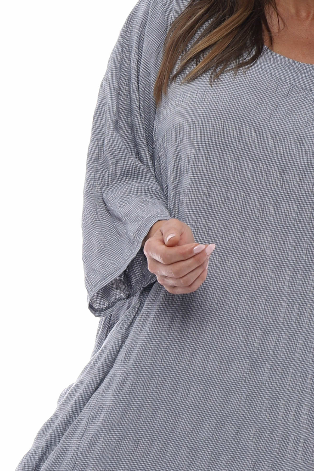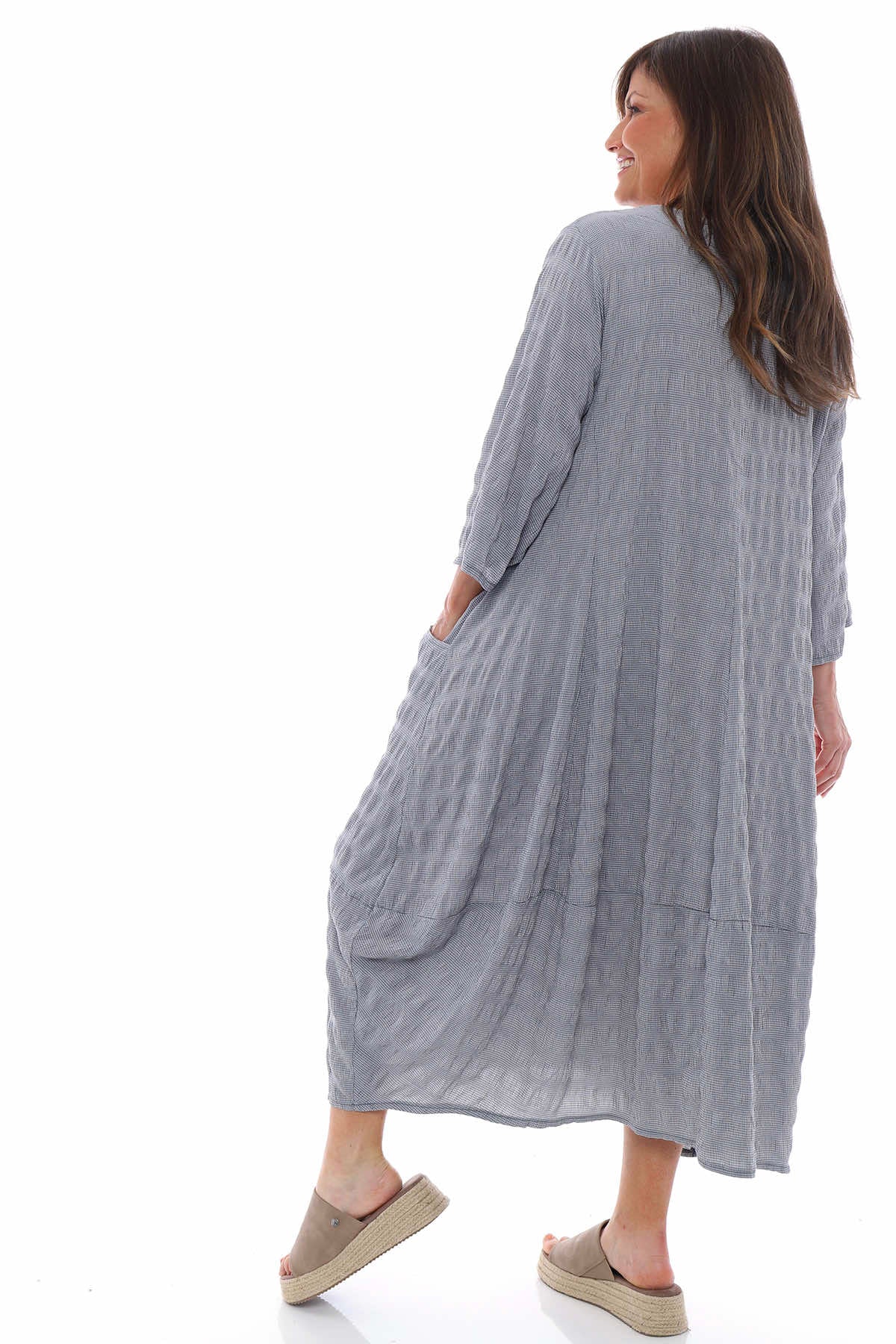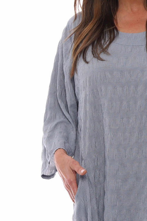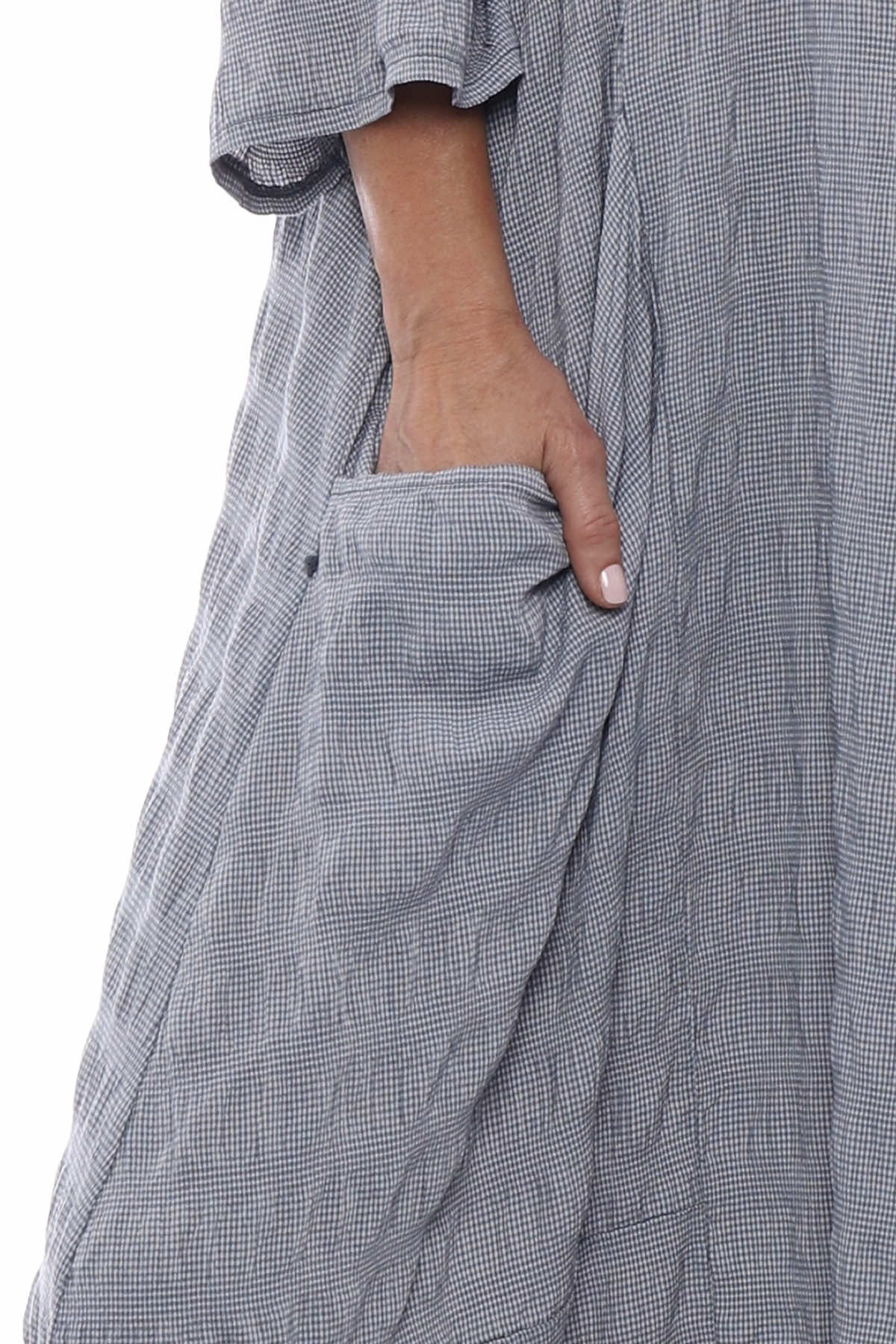 Here is your fresh take on gingham! The Made in Italy Roseanne Gingham Crinkle Dress features a rounded neckline, pockets and soft crinkle fabric. Pair with sandals.