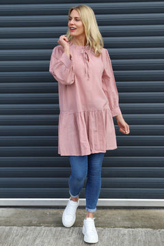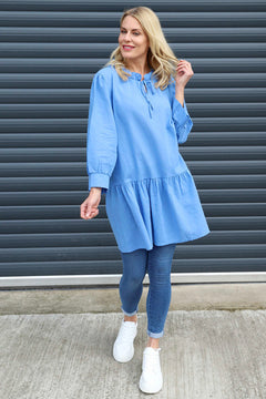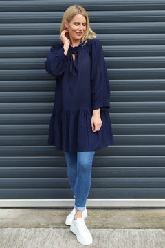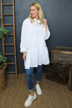 The Myaree Linen Tunic is the perfect addition to your wardrobe. Made from a comfortable blend of linen and cotton, this tunic features a tie neckline and tiered cuffs and hemline. The frill detail on the collar adds a touch of femininity to this stylish piece. Stay cool and effortlessly chic in this must-have tunic.