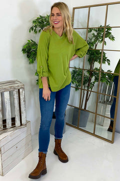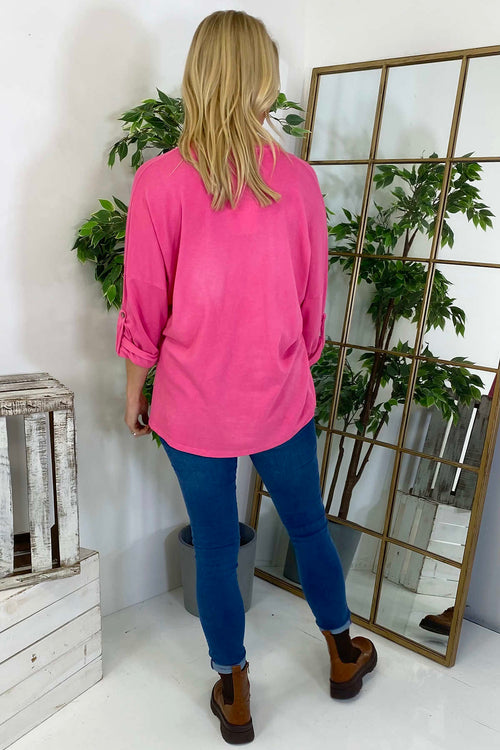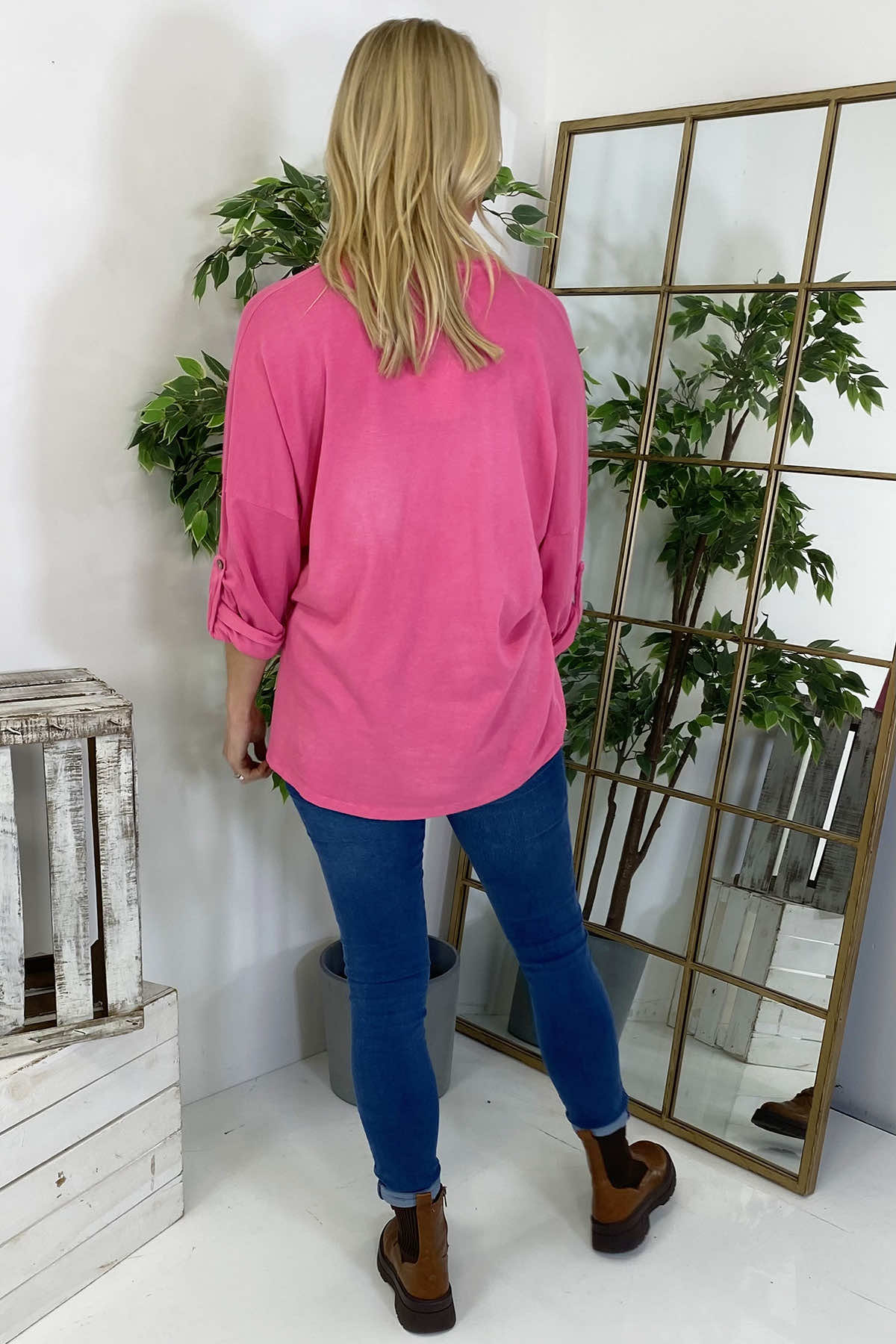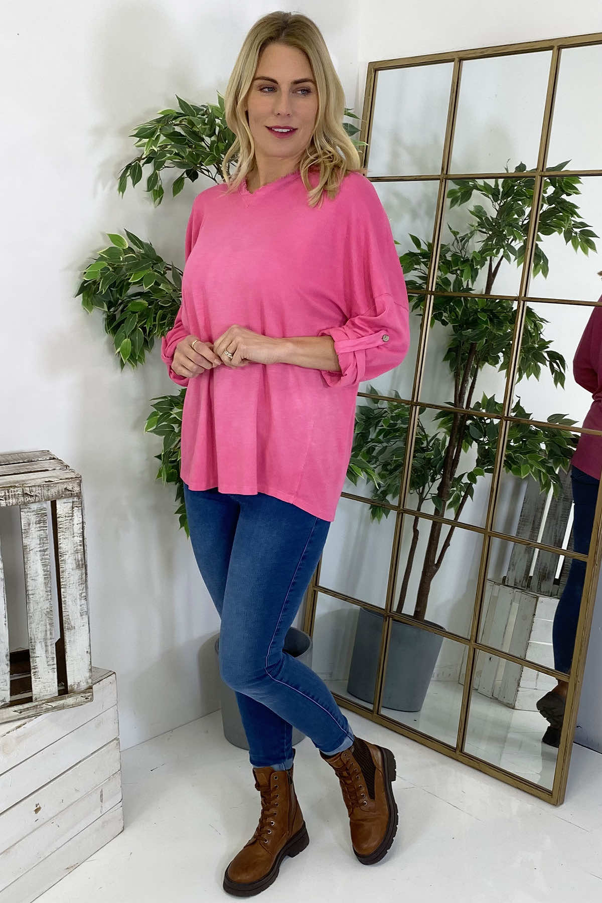 Nellie V-Neck Cotton Top Fuchsia Fuchsia