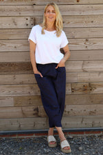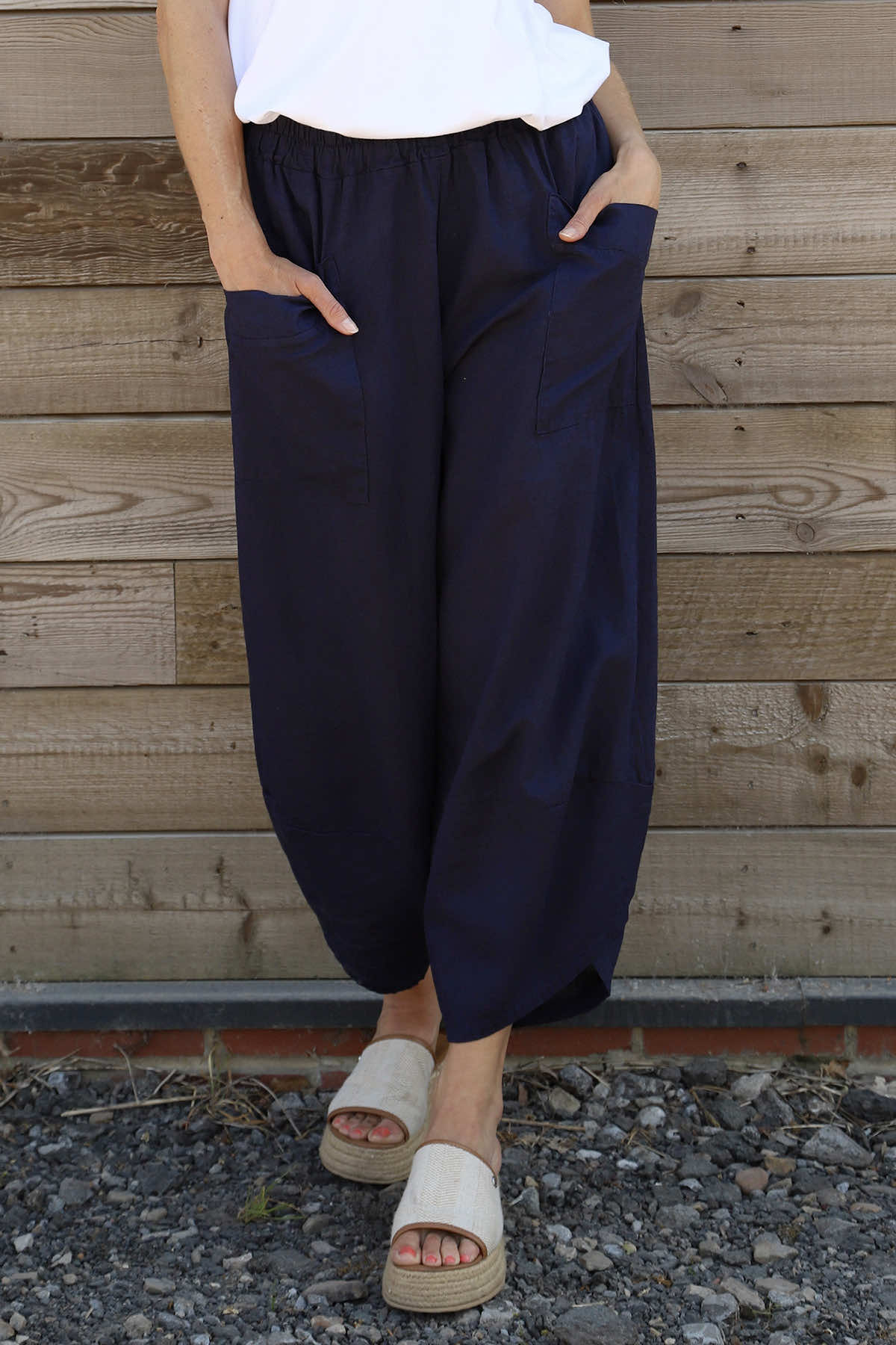 These Primrose Linen Trousers offer a relaxed fit for a comfortable and stylish look. Made from lightweight linen, they feature an elasticated waistband and pockets for added convenience. Perfect for any occasion, these trousers will keep you looking and feeling great all day long.
