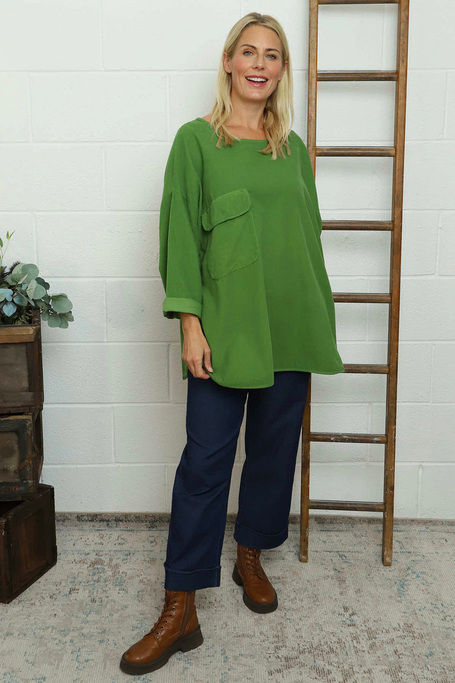 Selene Needlecord Pocket Top Green Green - Selene Needlecord Pocket Top Green Green