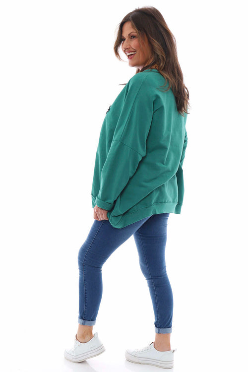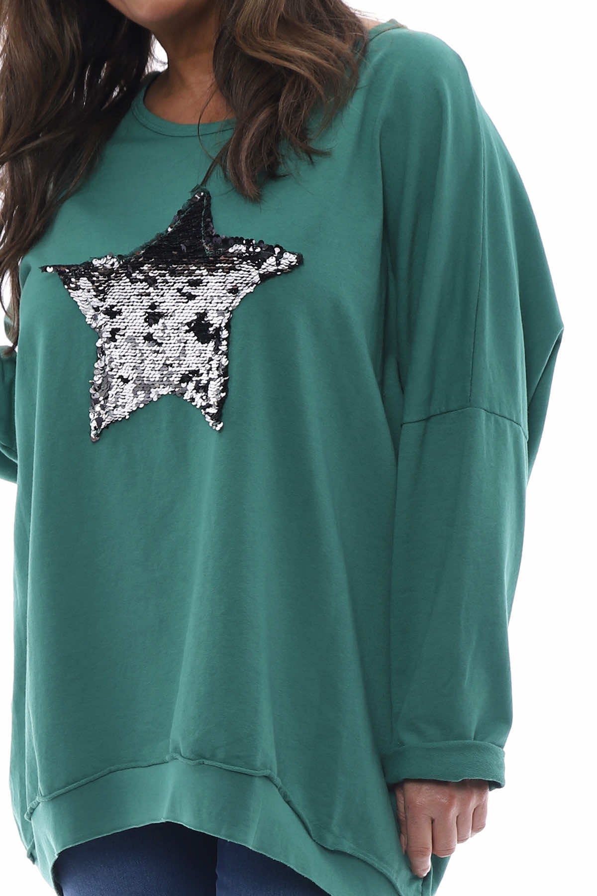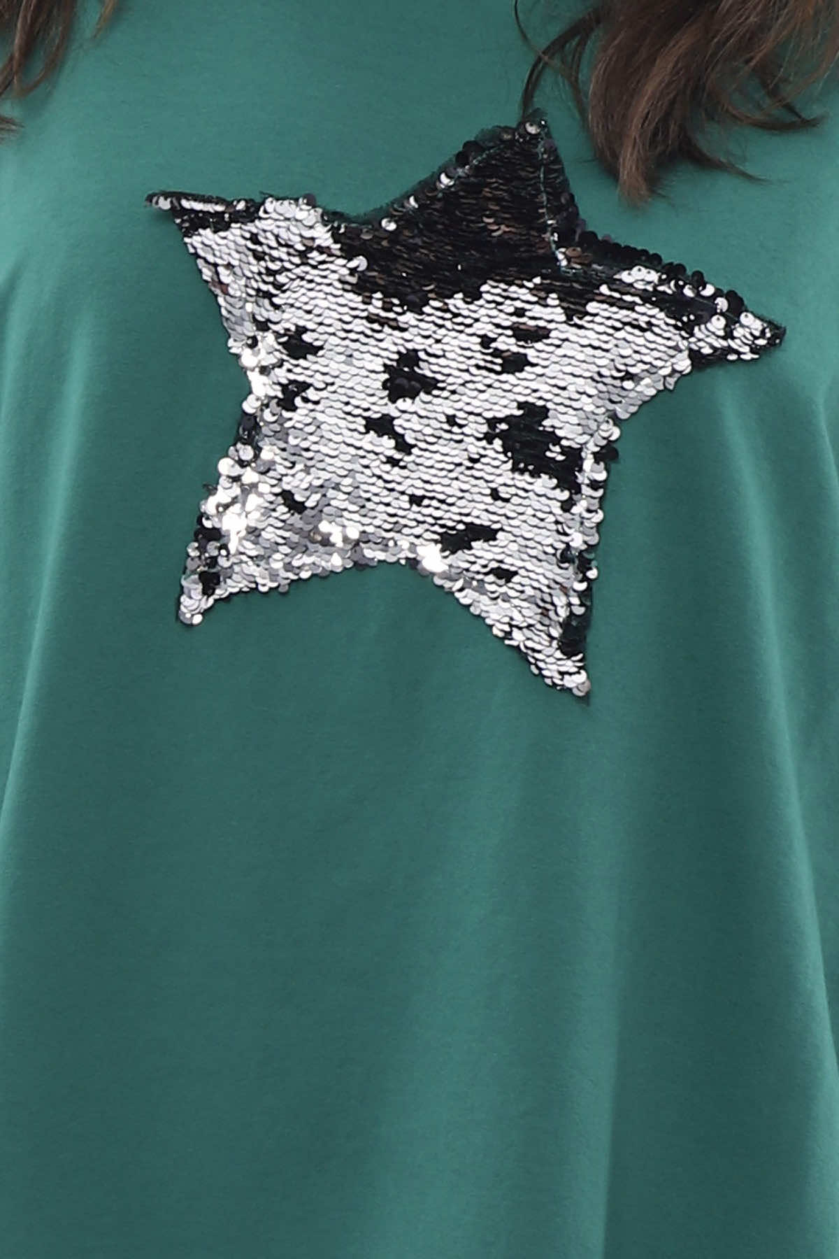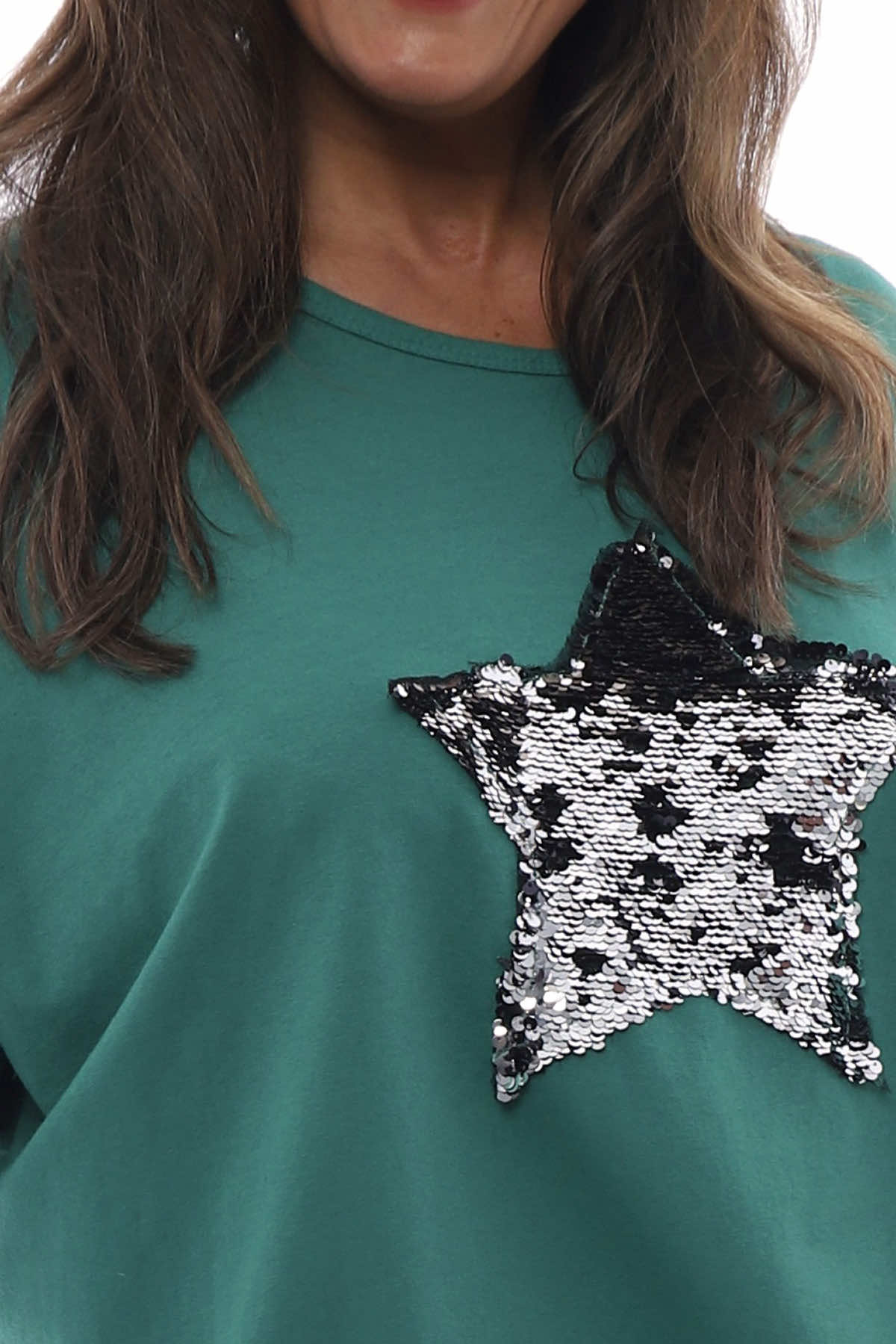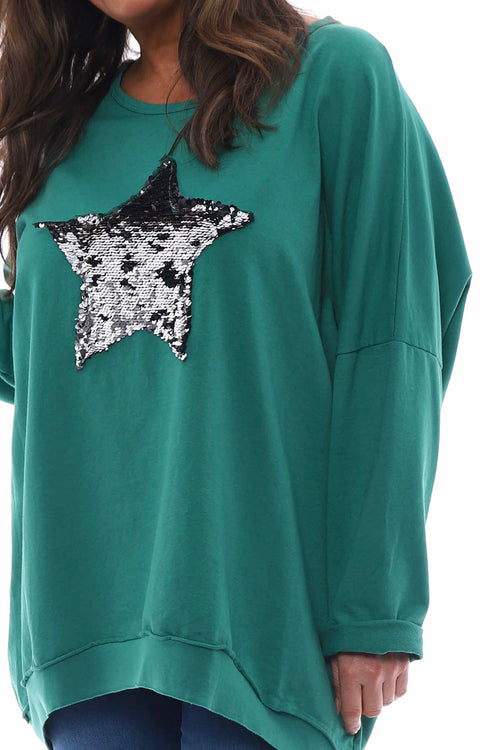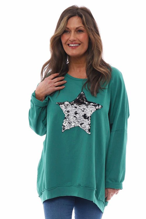 Selsey Sequin Star Cotton Top Emerald