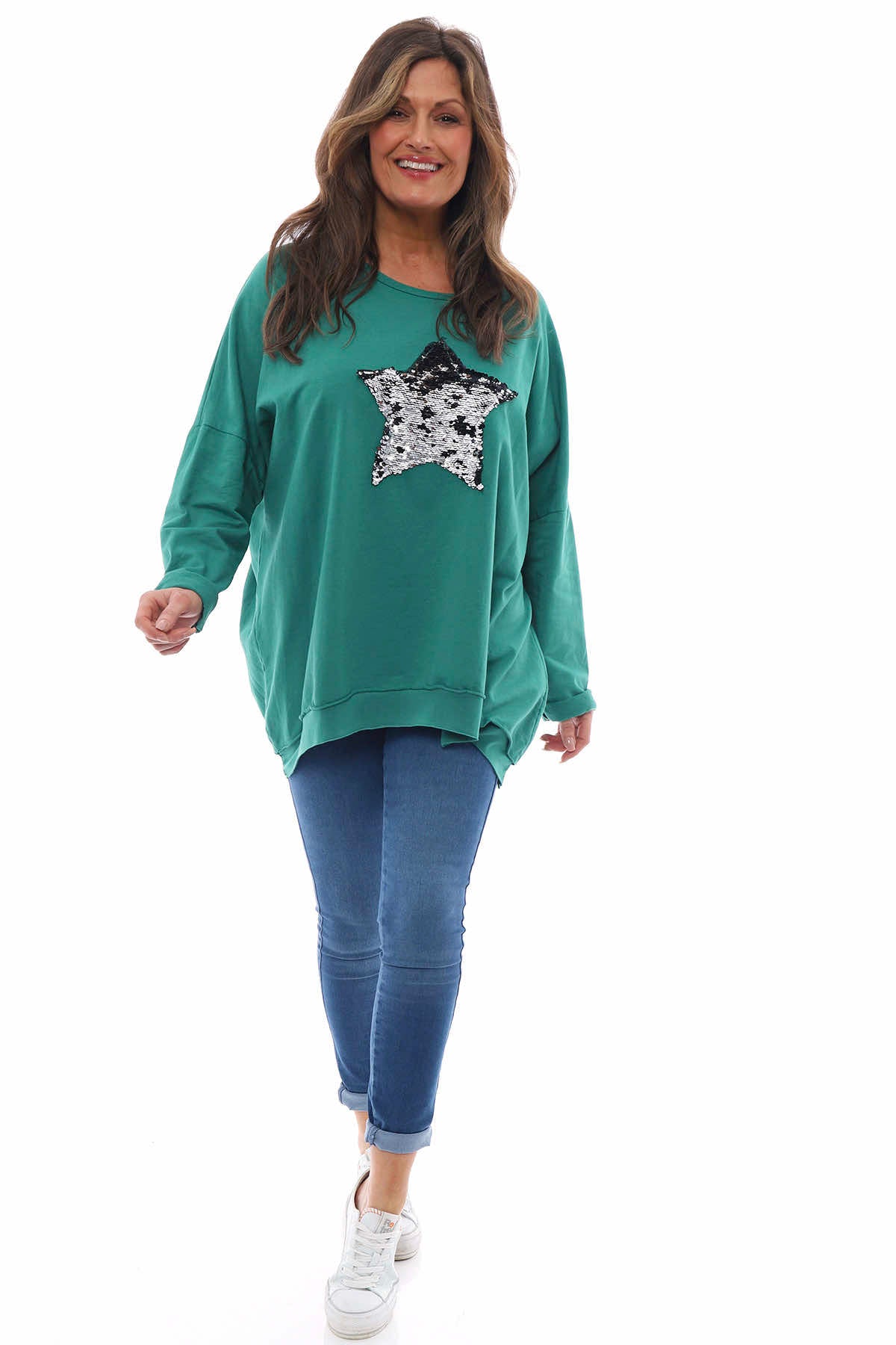 Sparkle and shine in the Exclusive Made in Italy Selsey Sequin Star Cotton Top. A stunning piece to have in your wardrobe for any occasion, featuring a rounded neckline, full length sleeves and a sequin star. What's not to love?