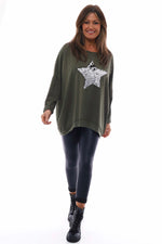 Selsey Sequin Star Cotton Top Khaki Khaki - Selsey Sequin Star Cotton Top Khaki Khaki