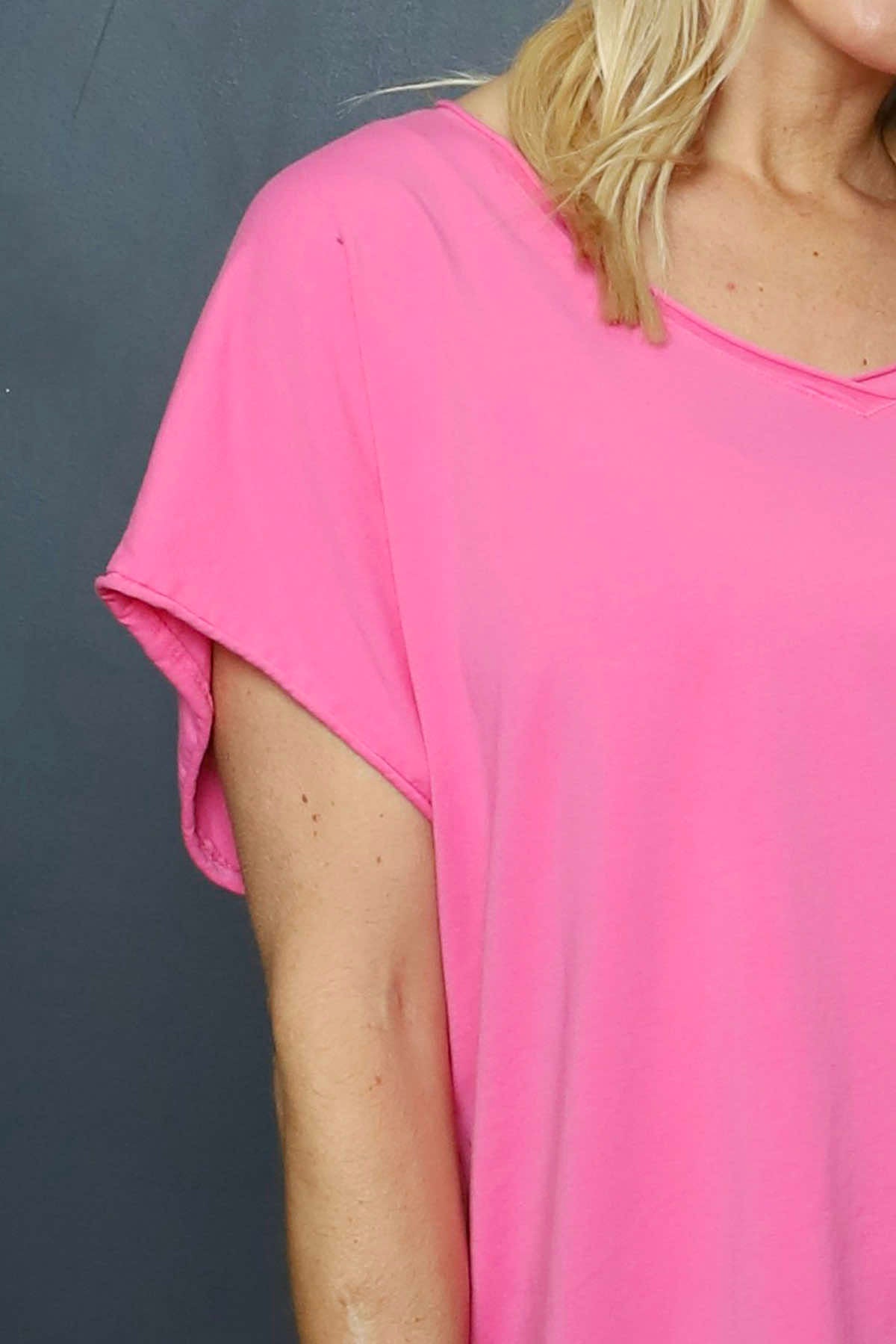 Tova V-Neck Cotton Top Fuchsia