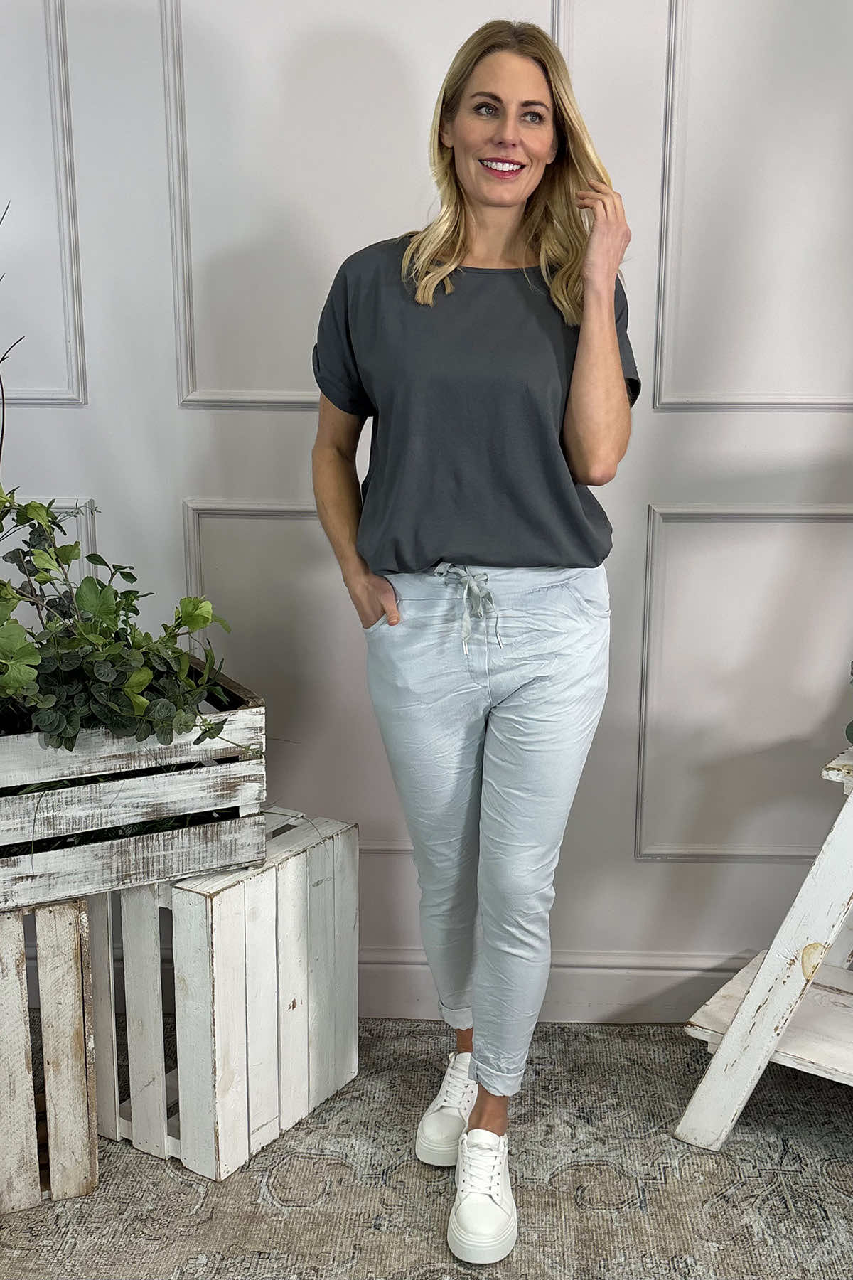 Your go to joggers for every season are back! The Made in Italy Yarwell Joggers are crafted from soft crinkle stretch fabric for the perfect fit every time. Finished with pockets, an elasticated waistband and drawstring detailing. Wear everywhere this season.