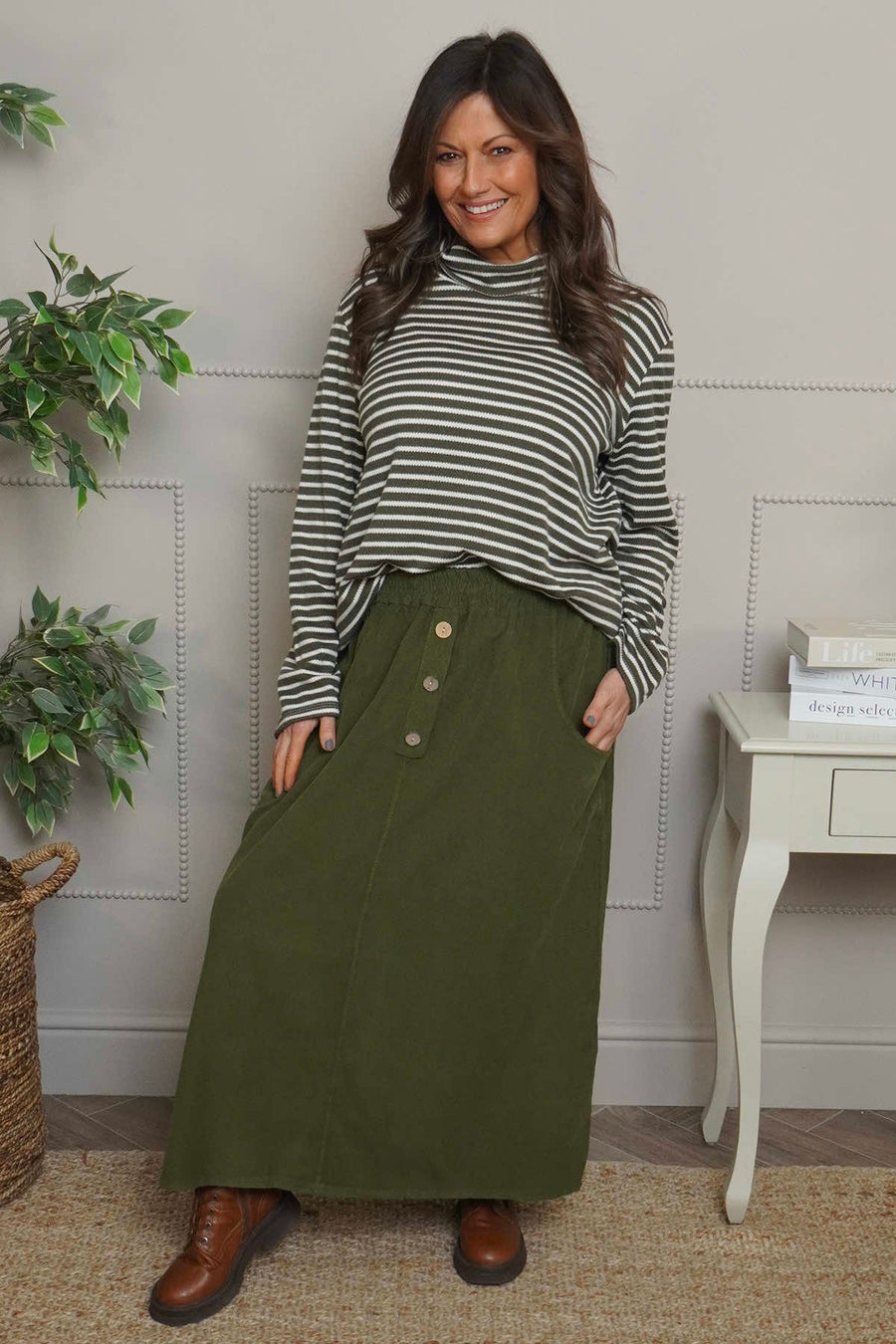 Zinnia Needlecord Skirt Olive